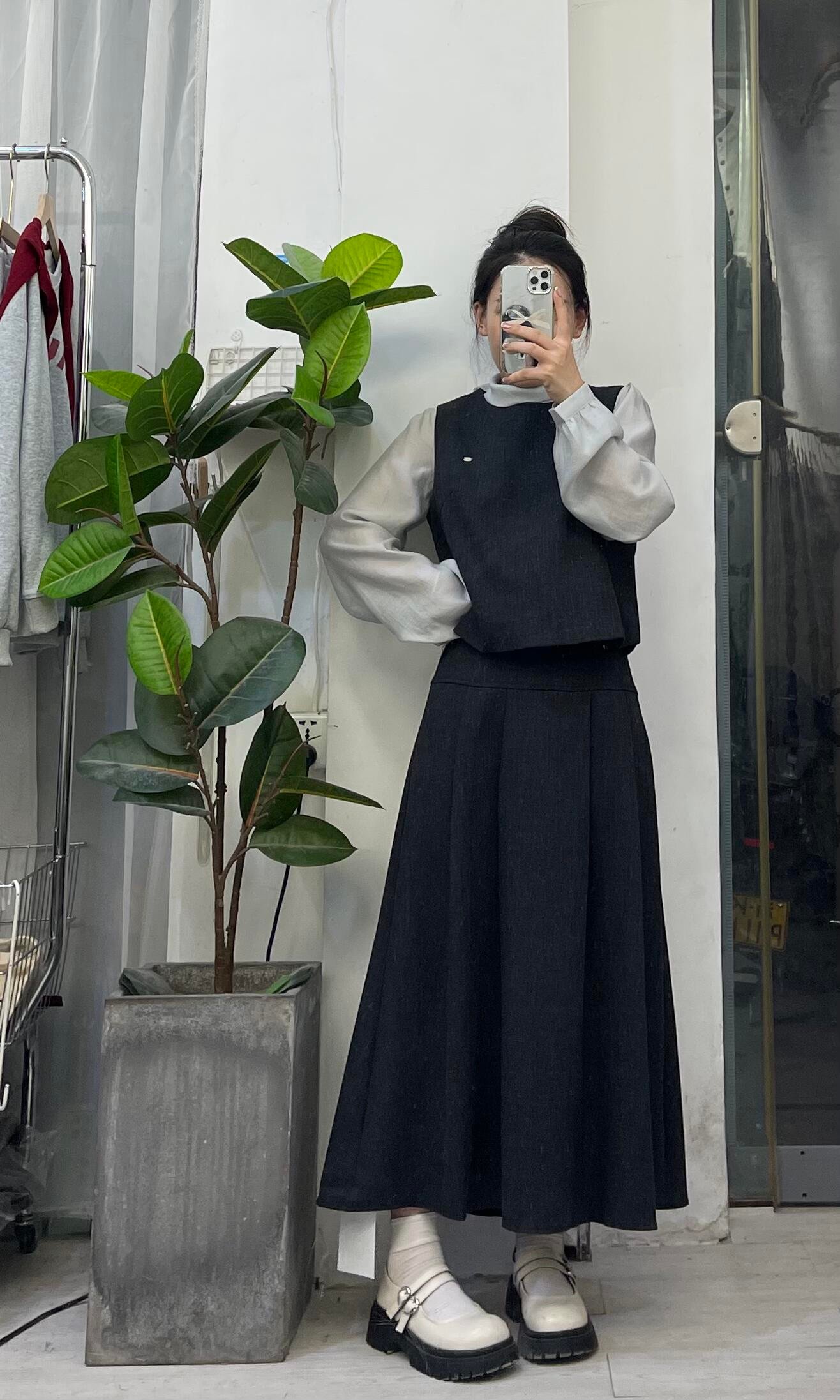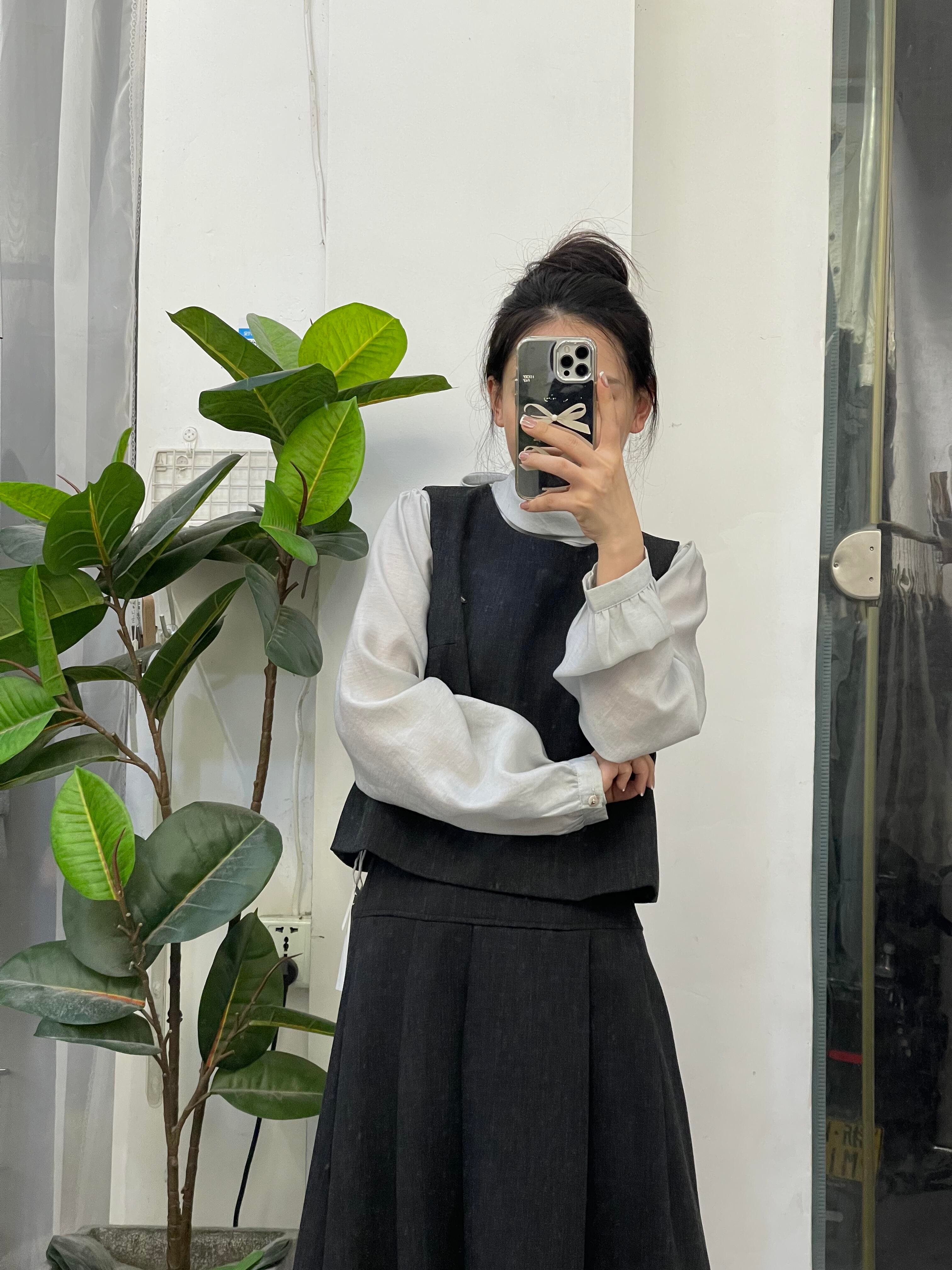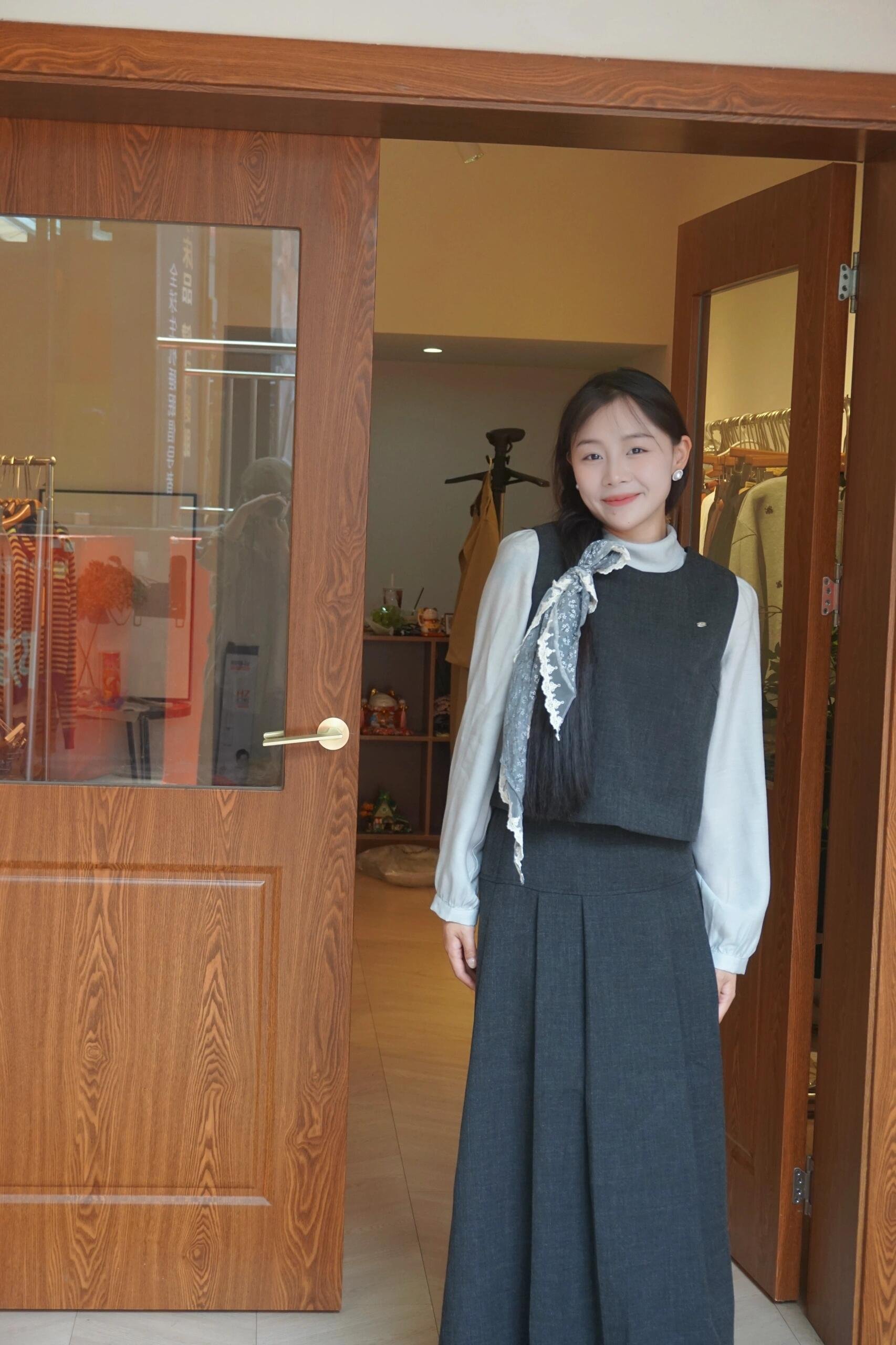 法式黑色马甲搭配一整套半身连衣裙
