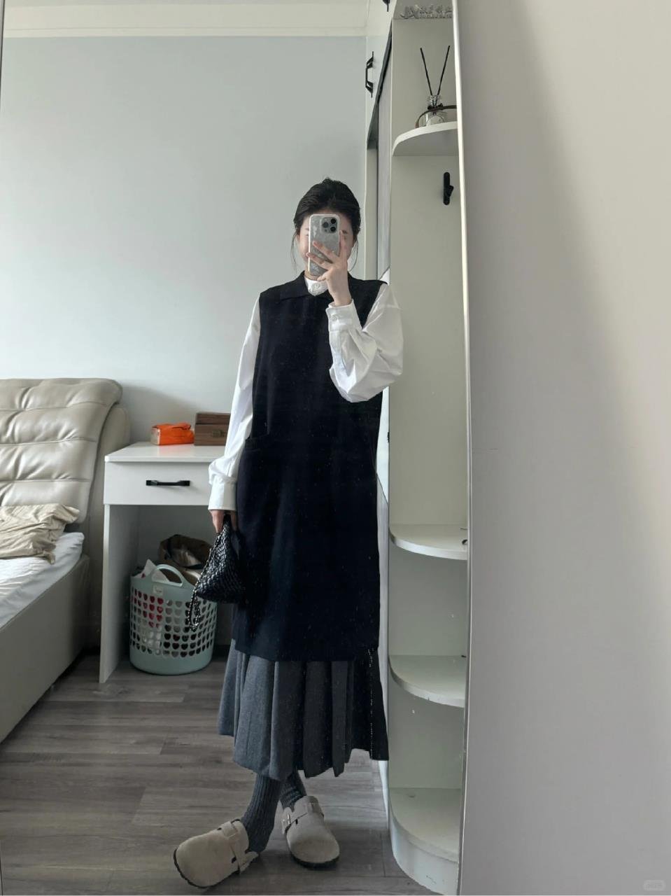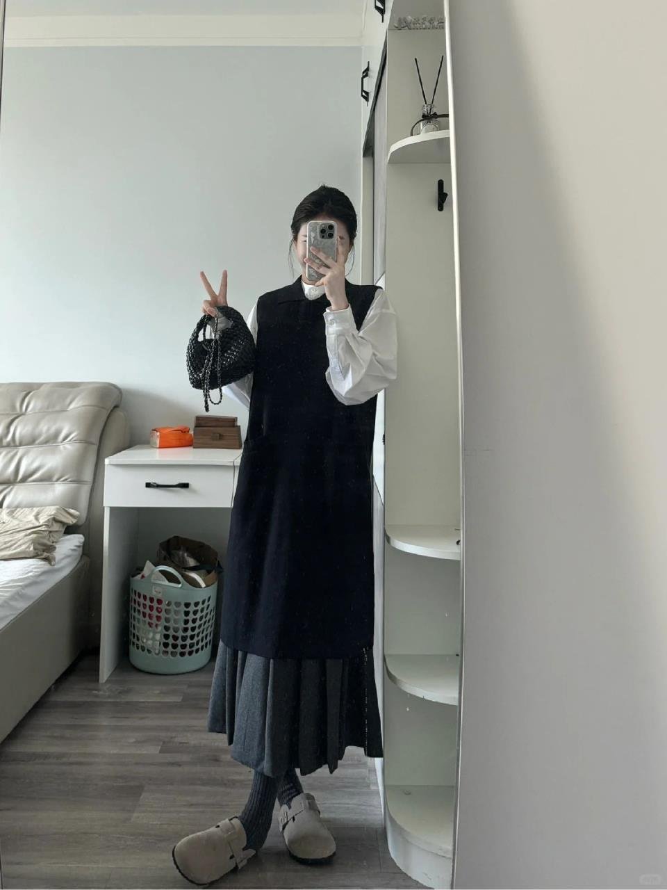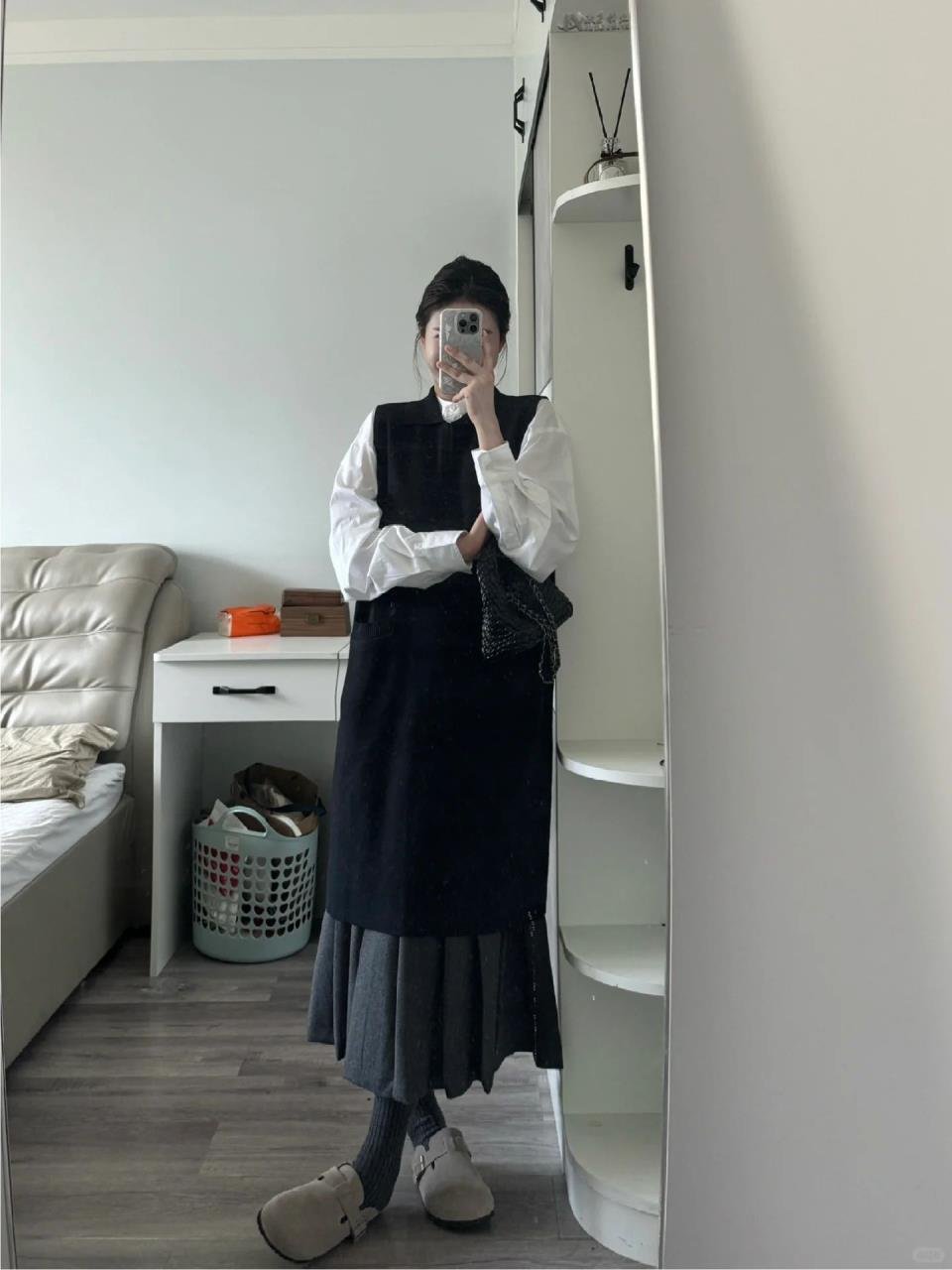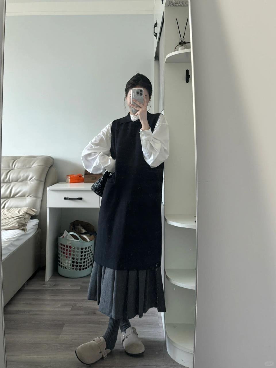 2024年秋季新款高级感气质衬衫毛衣连衣裙三件套女小个子穿搭套装