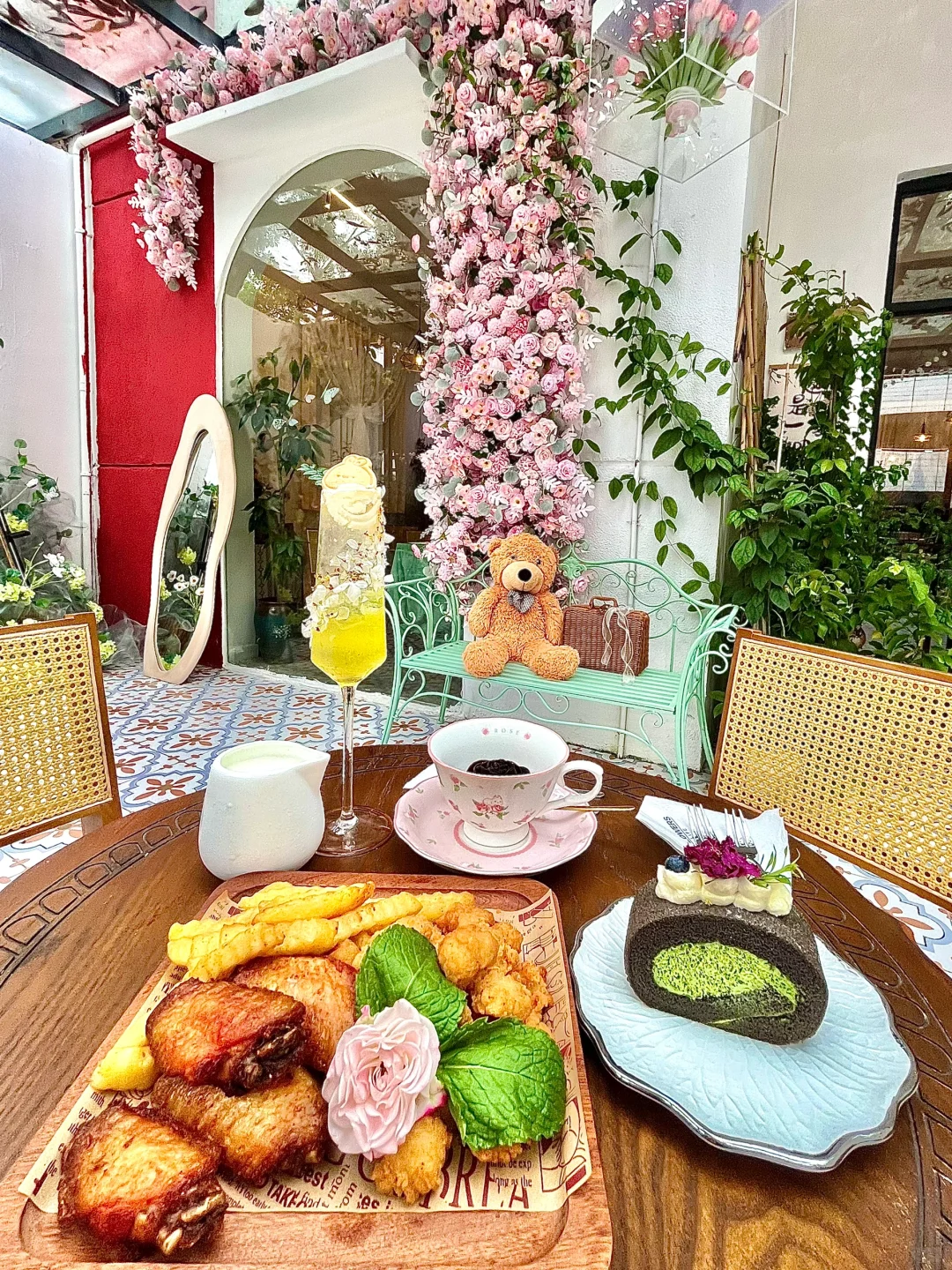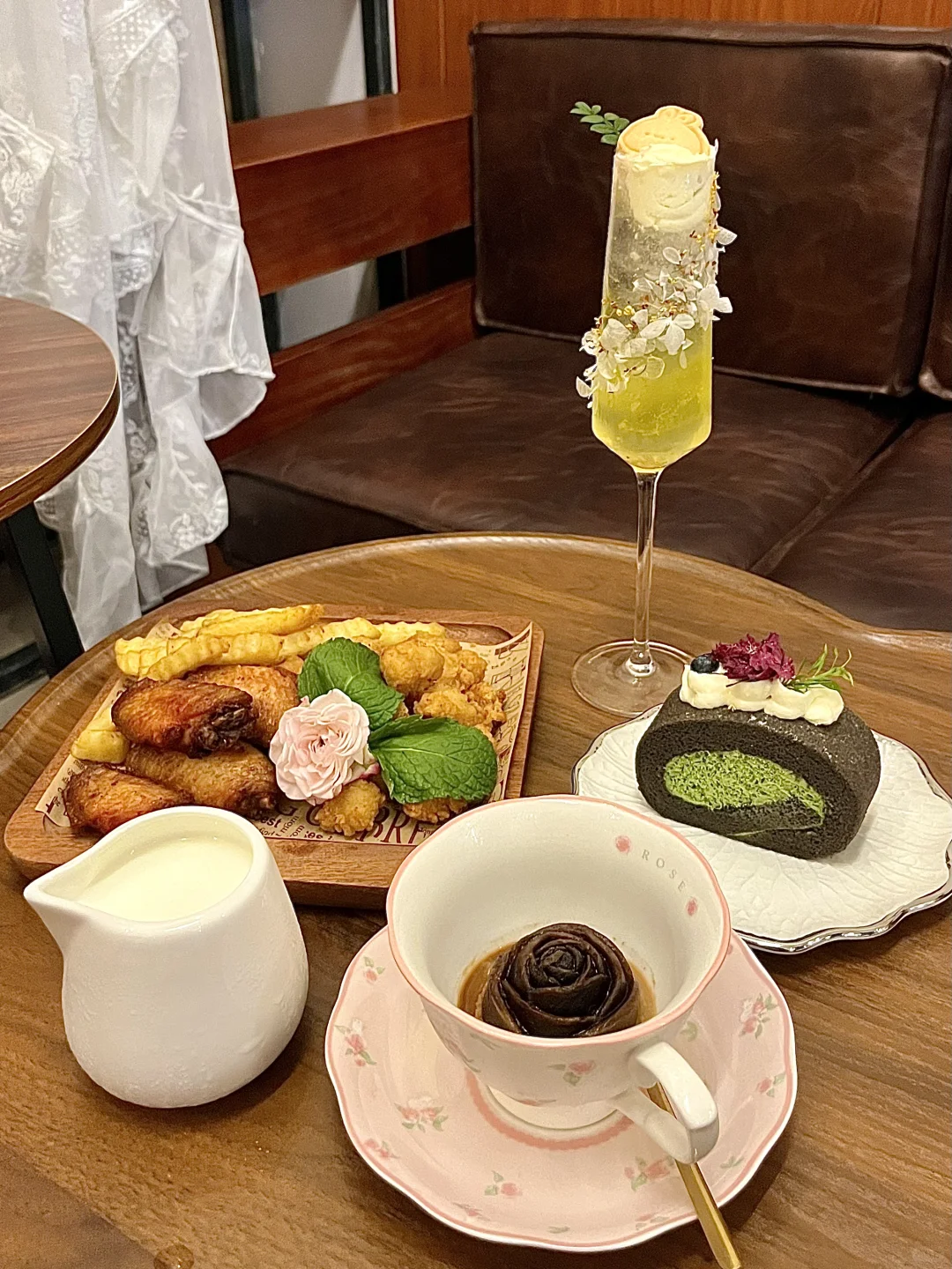 - 利和附近这家咖啡店好漂亮!🫧 好适合拍照📷都是花花💐 复古又出片🥰二楼还有精致女装 - 🍸月兔 颜值介么🆙甜甜的又可爱 🍰黑巧抹茶蛋糕卷好好吃!绵密浓郁🥰 🌹手捧玫瑰 玫瑰形状的咖啡冰好特别哦 -