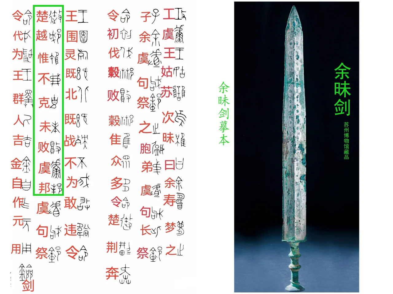 图五,春秋时期吴国余昧剑铭文摹本:楚越惟不克,未败虞邦。