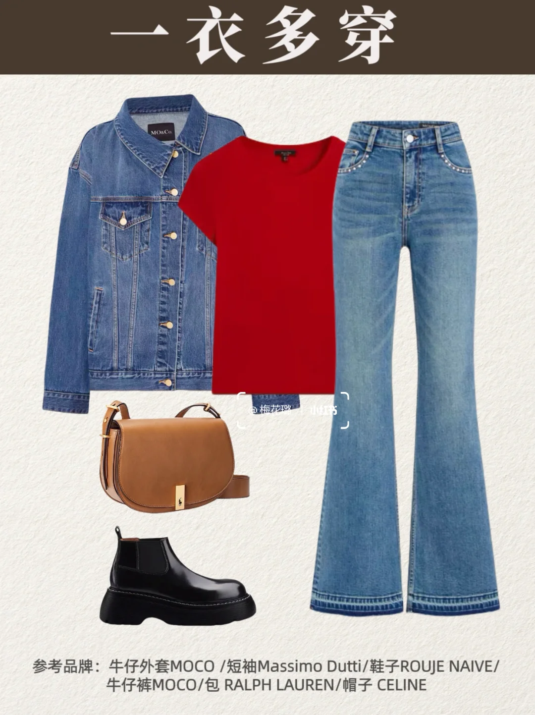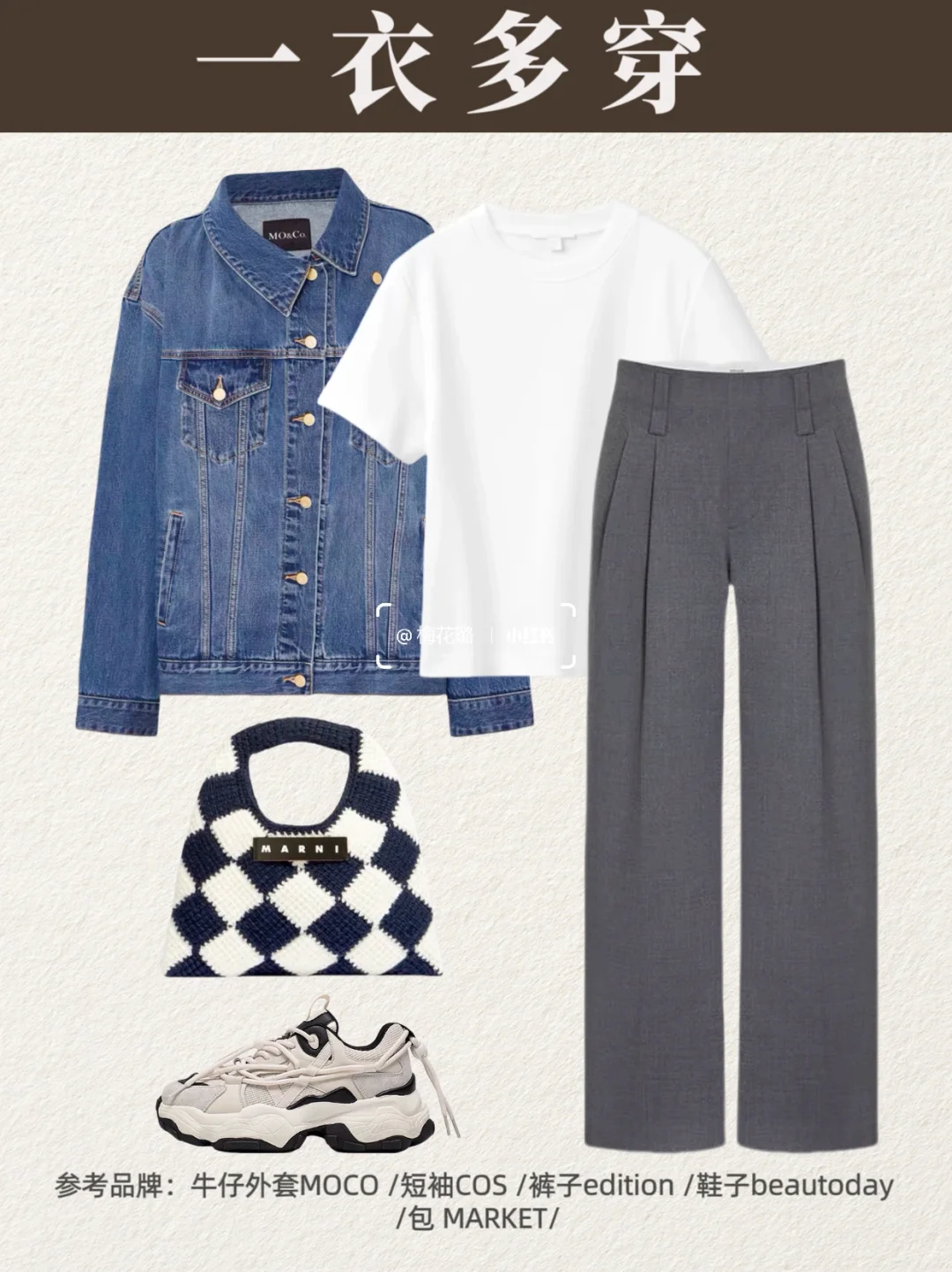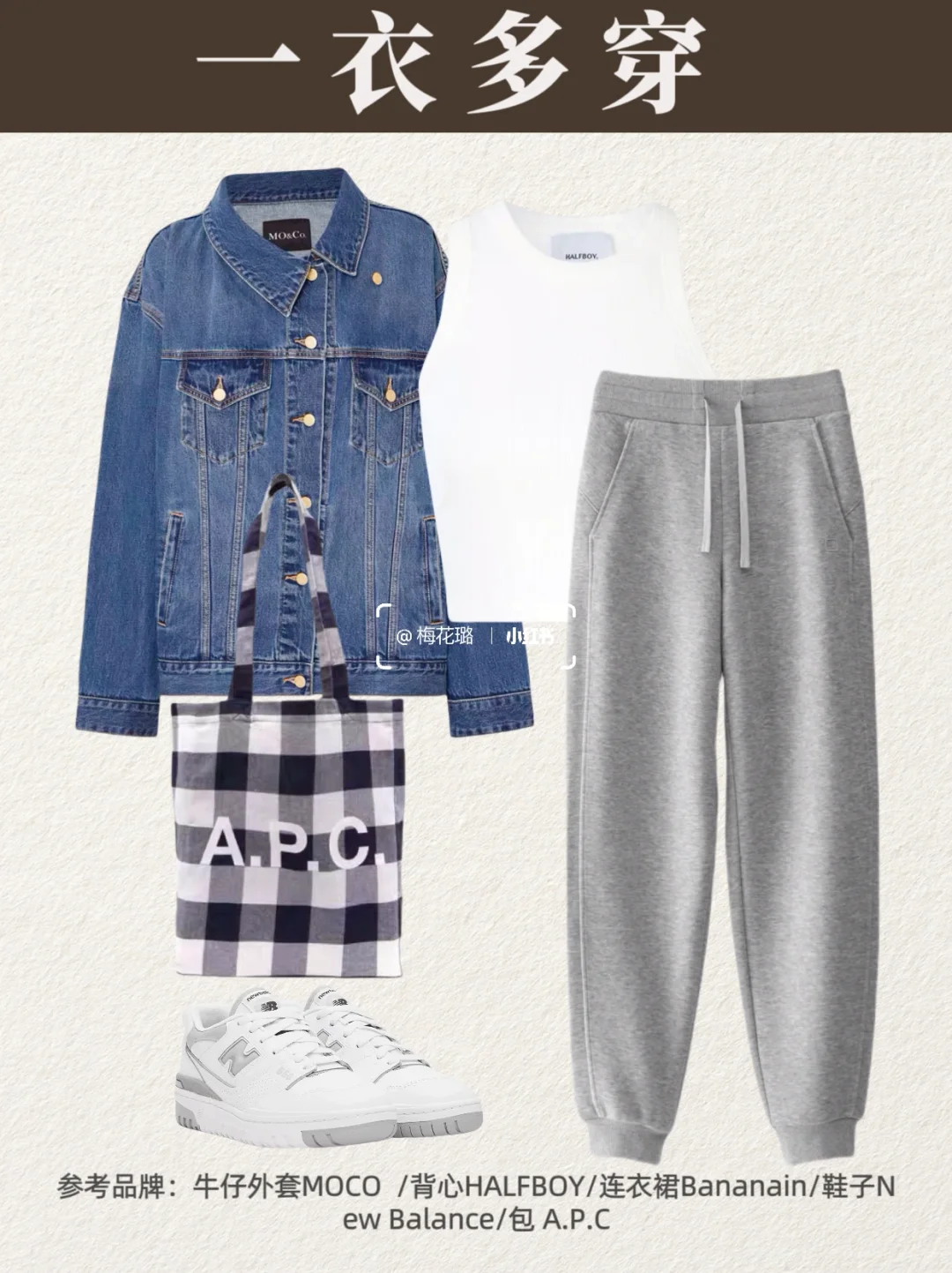 - 减龄效果:牛仔外套与运动裤的组合,展现出运动休闲风,具有极佳的减龄效果。