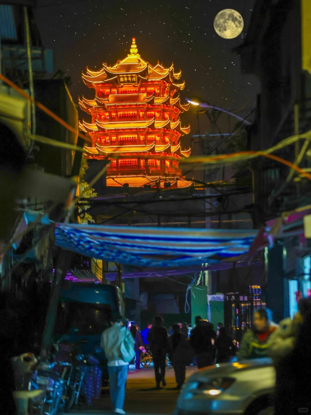 在小巷子里拍到的古今同框,烟火气衬托黄鹤楼更有魅力