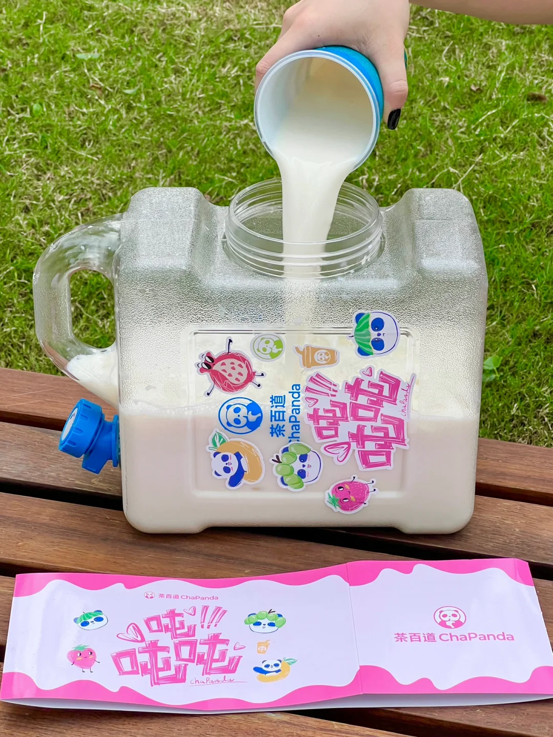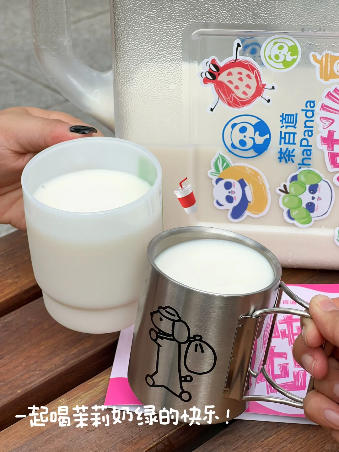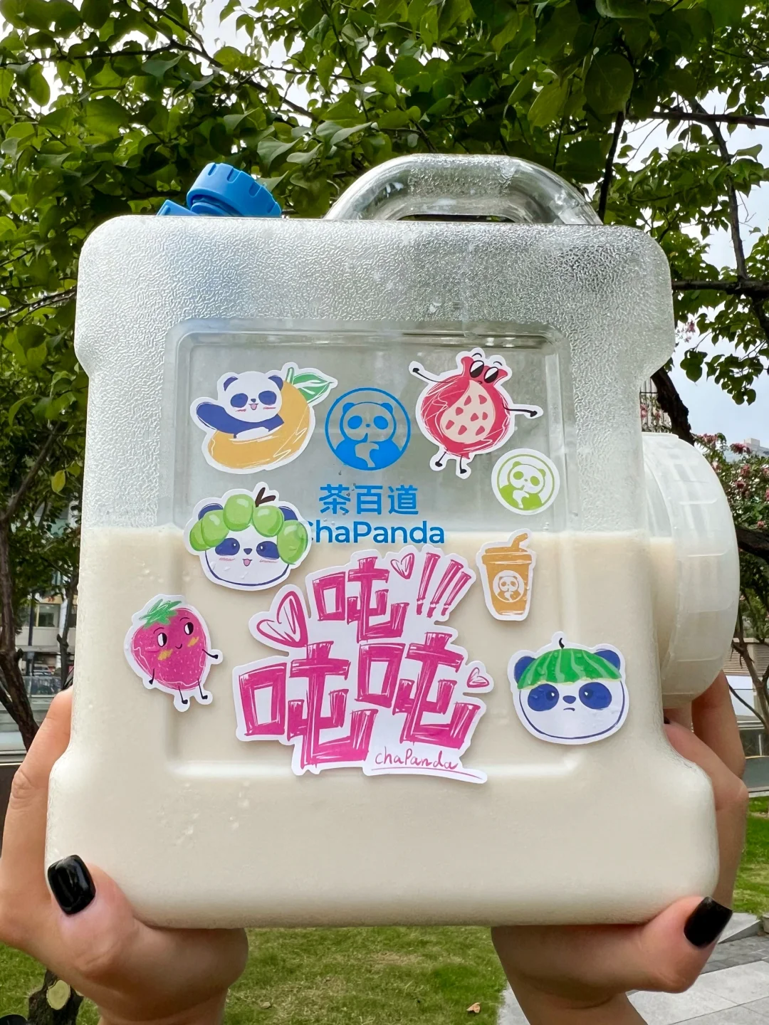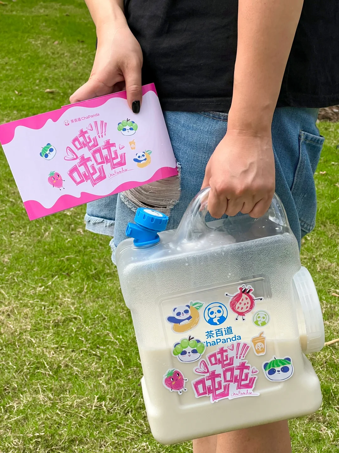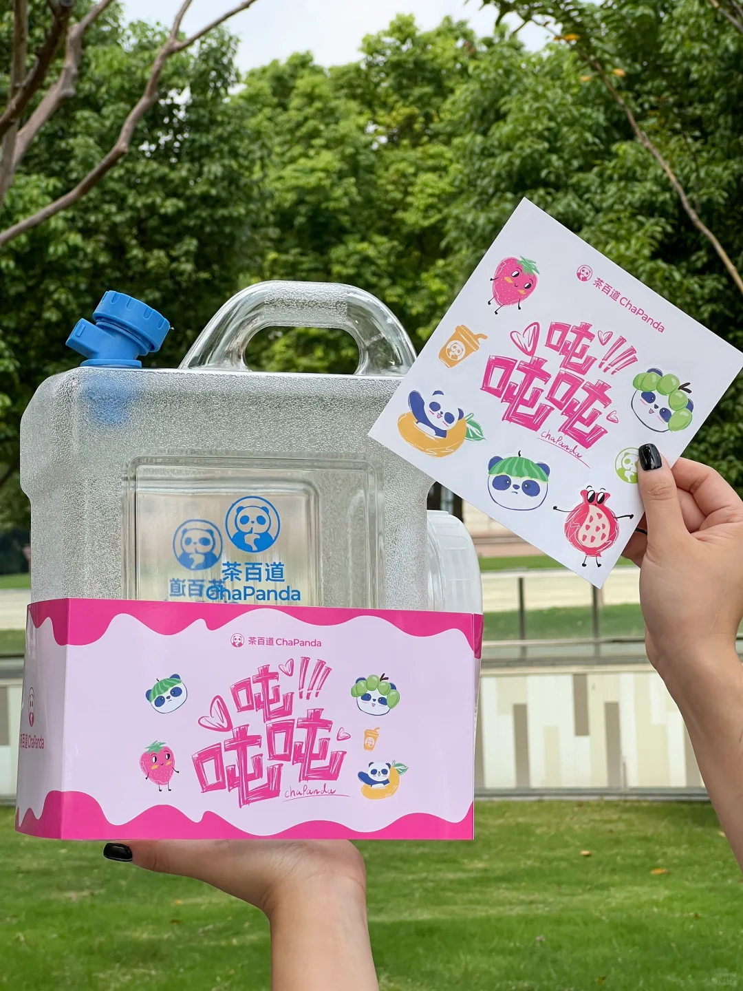 茶百道!你怎么知道国庆我要出去露营哈哈!这个吨吨桶刚好可以用上 不要太拉风奥~ 茶百道5L吨吨桶周边套装(包含腰封和贴纸)‼ ⏰10/1-10/8 ✔🦘外卖买指定套餐吨吨桶周边套装 ✔🦘外卖指定的茶百道门店 实付累计满55元且确认收货可以兑换周边套装 ✔🦘外卖、e了么外卖🆓抽奖 我们点了白月光茉莉奶绿 杯子还是和陕西历史博物馆联名的!三分糖正常冰🧊刚好!清香的茉莉味吼吼喝!
