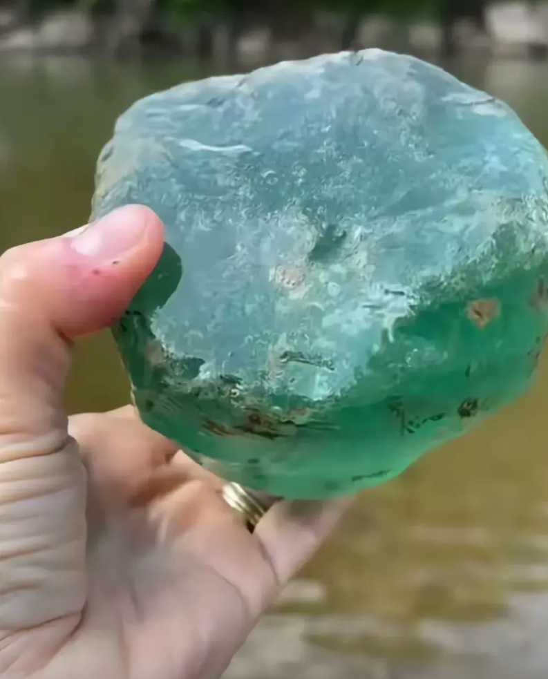 广东,一男子在河边捞鱼,竟意外在岸边的一处草丛里看到一块浅绿色的石头,于是,他赶忙捡起来细看,瞬间惊讶不已。
