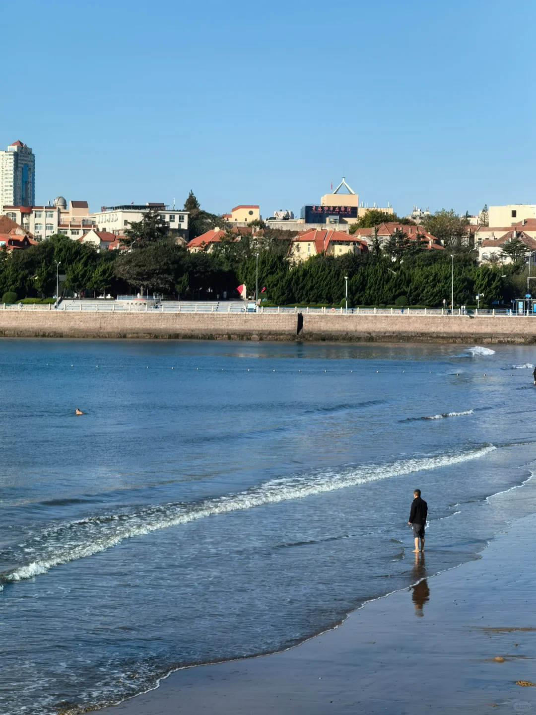 10.2青岛街头实况 风停了 海水湛蓝
