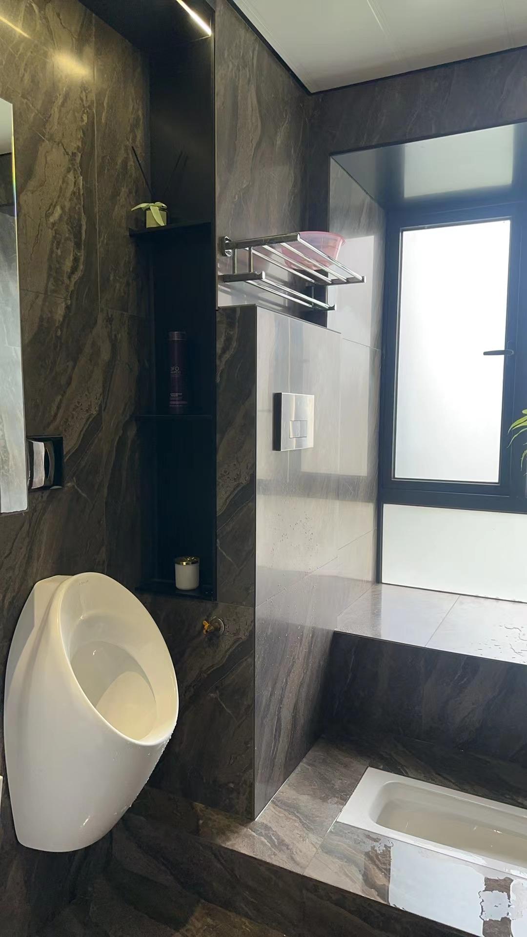 卫生间铺贴这种颜色好看吗?装修最令人头痛的问题是选材,特别是卫生间里面铺贴,普通地板砖好?还是岩板大板定制好呢?评论区多多指教。