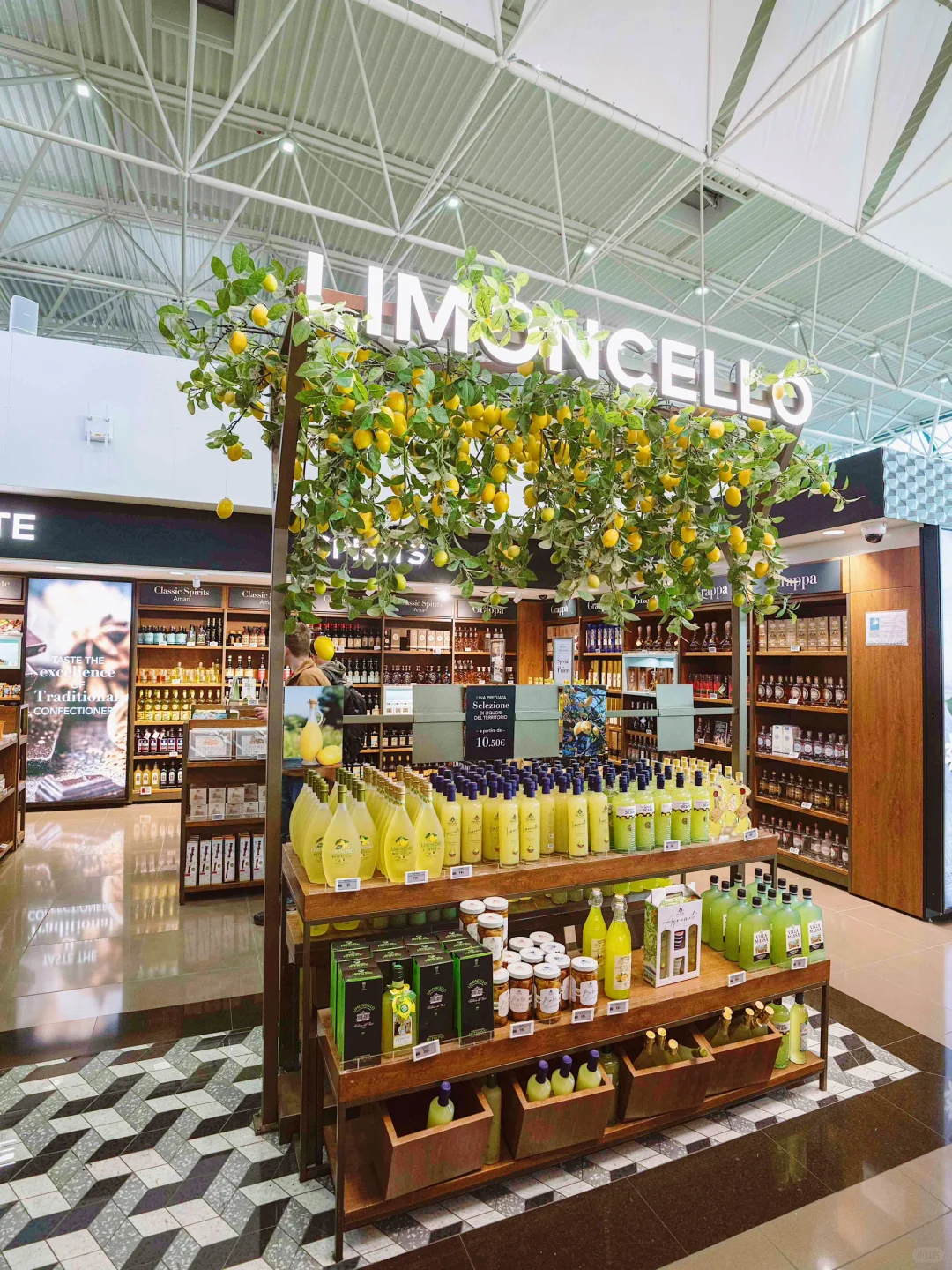 🍷🥃🍫Aelia直接按美妆、护肤、酒类、香水、巧克力等分区,方便购买。常见的护肤La Mer, 雅诗兰黛,La Prairie, Clarins, 美妆Giorgio Armani, YSL, Guerlain, Givenchy就不多说了,非常好买!🍋我最喜欢的是Limoncello这个展柜的柠檬酒!这是意大利南部那不勒斯湾区等省份常见餐后酒,用柠檬皮、酒精和水制成的,柠檬皮使用的是意大利索伦托品种的柠檬,😋酸甜的口味很特别,十几欧的价格也很适合作为伴手礼带给朋友~