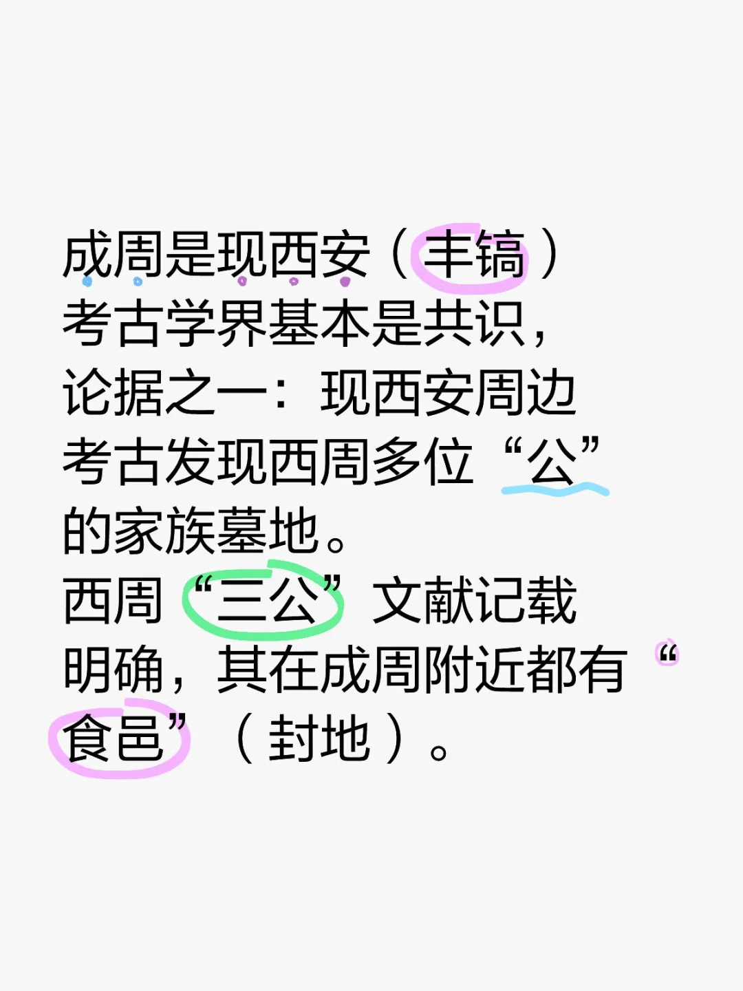 成周是现西安(丰镐)考古学界基本是共识,论据之一:现西安周边考古发现西周多位“公”的家族墓地。 西周“三公”文献记载明确,其在成周附近都有“食邑”(封地)。