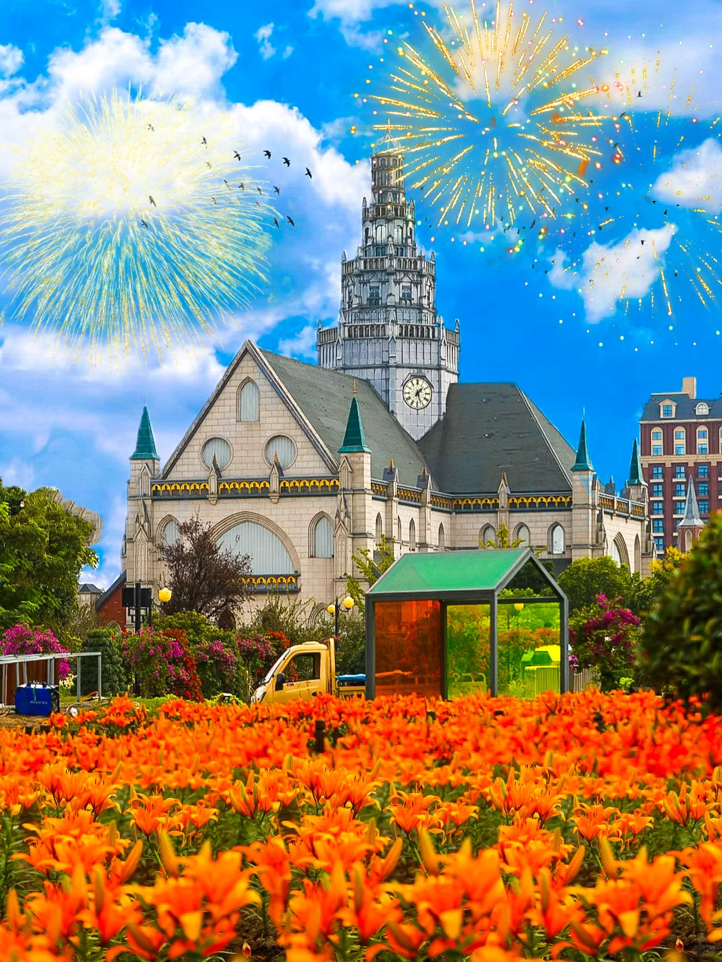 城堡,风车,草坪,黑天鹅,花海,羊驼🦙