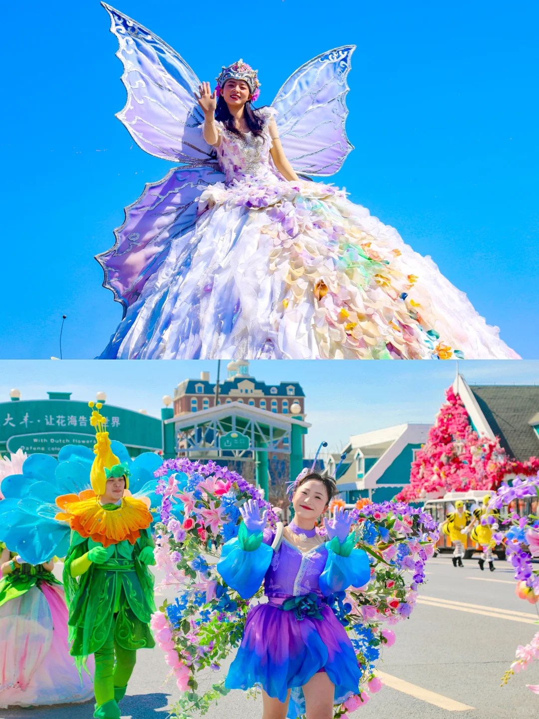 有各种主题花车和精美造型的卡通人物,在景区内巡游一圈,和观众互动很有趣