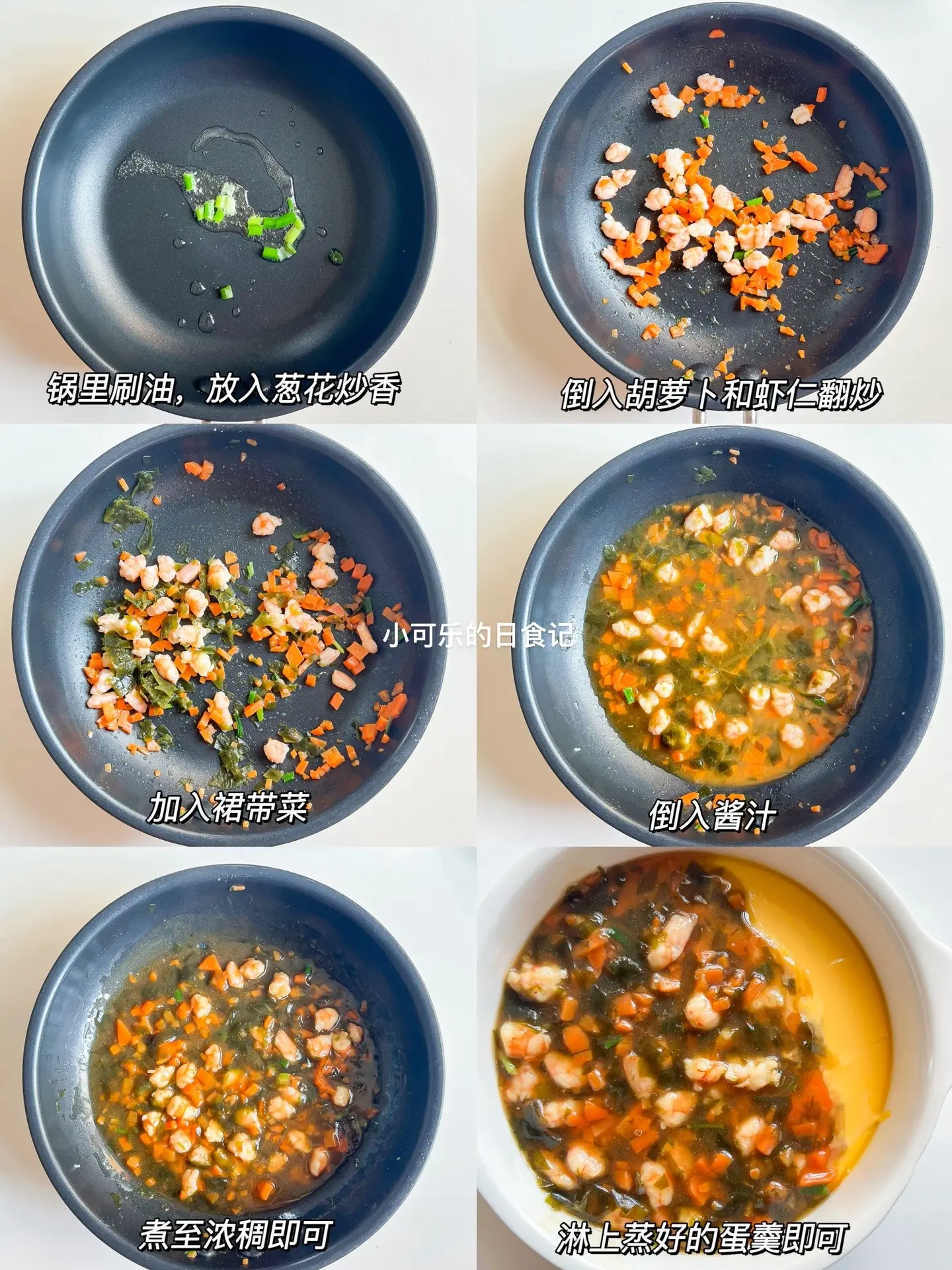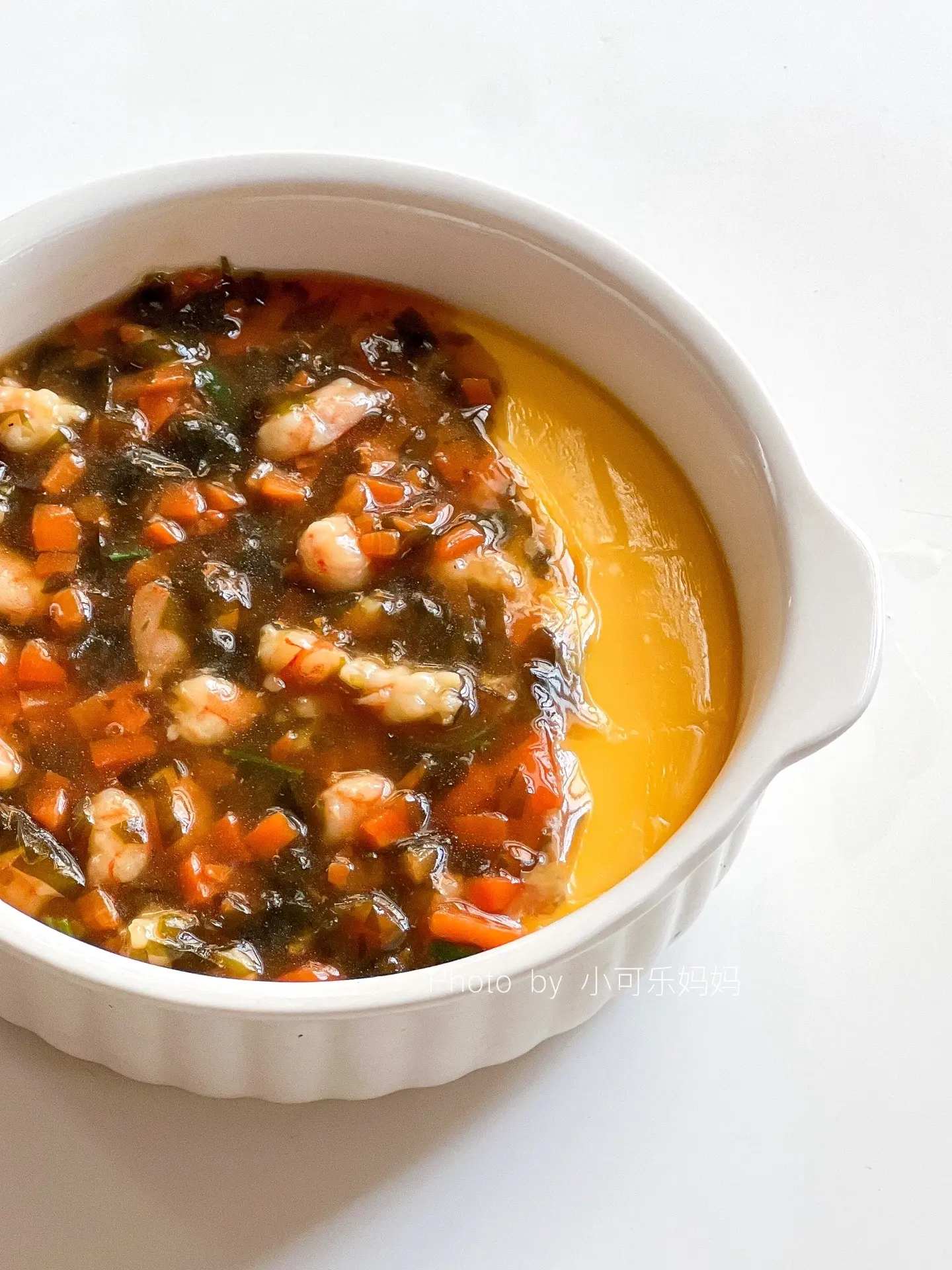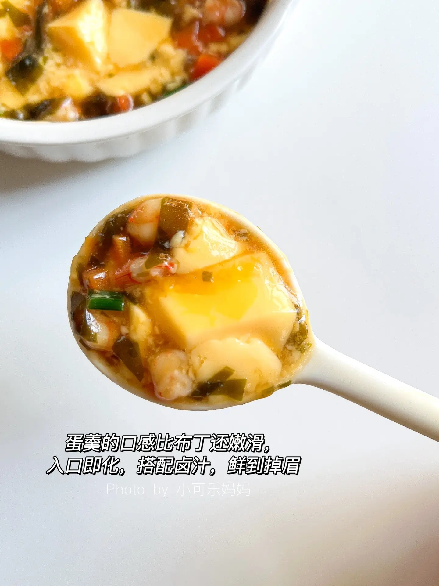 这个打卤蛋羹真的巨巨巨好吃‼️超嫩滑。今天分享一道打卤蛋羹,好吃到停不下来,蛋羹的口感比布丁还要嫩滑,入口即化,搭配卤汁,真的鲜到掉眉,宝宝一口接一口,轻松搞定饭渣宝宝。 🥣食材: 虾仁 裙带菜或木耳 胡萝卜 鸡蛋2个 具体做法参考图文 ✅一岁以下宝宝不加调味料 ✅食材大小可根据宝宝咀嚼能力调整