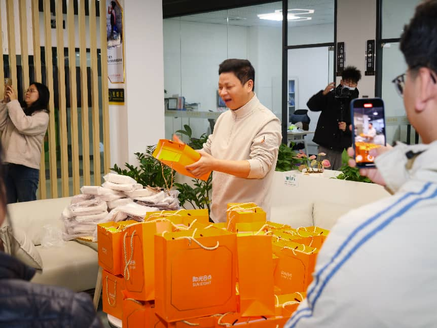 每年的38妇女节,阳光8点也从不会敷衍了事,都会为每一位女员工精心准备一份礼物,这份礼物或许不贵重,却承载着企业对女员工最真挚的敬意与感谢。董事长袁仕伟常说:“我们阳光箱包集团正是因为有这样大量的勤劳努力的女同事们,才创造出了这么多不可磨灭的佳绩。”