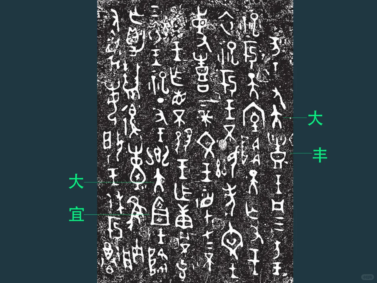4、图八,铭文中的两个”大“字,学界释文无异议,两个“吴”字,不少学者释读为“天”字,但依据铭文,“大丰”、“大宜”、“祀(祭祀)”、“上帝”(西周祭祀的上帝是:五帝,五帝中舜帝名称多种:舜、吴、虞等,显然释文为“吴”更合适)。