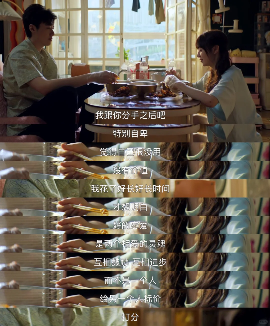 何知南说自己分手之后想明白了,两个相爱的人是要一起进步互相鼓励的,而不是单方面的一个人给另一个人打分、标价。如果一定要有一个分数的话,也应该是自己给自己打分!
