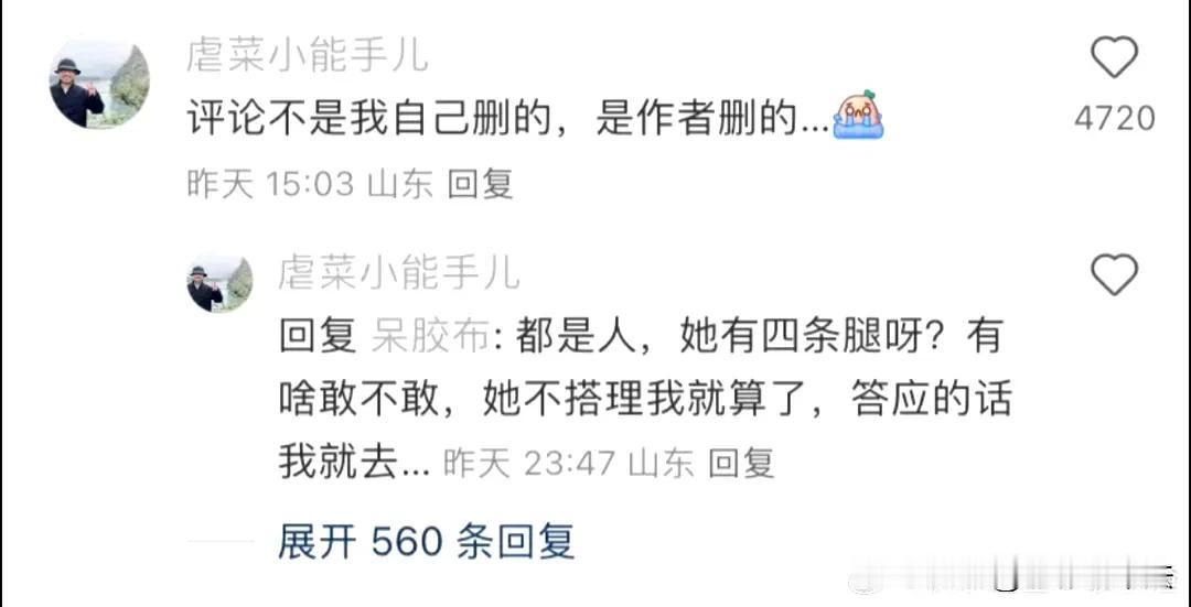 舒淇,太尴尬了! 10月5日,舒淇冲上热搜,因为她在网上被搭讪吓得把网名从“SQ”改为“舒淇”,然后很多网友义愤填膺,认为这不是搭讪,而是X骚扰。 当时搭讪的网友说的是:“小美女挺漂亮啊,在成都吗,一块吃个饭呗……” 后来这条评论被删了,这位网友还追加了一条解释:不是我删的哈,是作者删的。 网友们对此议论纷纷: 酸了,这种自信我这辈子下辈子都学不会。 他山东IP的问人家在不在成都一块吃饭? 这人会说,舒淇为我改了名。 我要有这一半自信也不至于活的这么窝囊。 听到“小美女”三个字就知道没好事。 没发过照片,只是性别女都能收到好几条。 啊!有幸刷到这条,没想到是舒淇。 啊,有一说一,他光看这两张就能发出邀请的话,别说确实有眼光。 …… 从这位网友的历史记录看,他确实以非常高的频率在网上搭讪各种女生,这种行为已经涉嫌X骚扰,但也有一个疑问,他是真的不认识舒淇吗,个人表示难以理解。 另外,这种新媒体账号明星一般不都是由工作室打理吗?所以被骚扰属实,但改名应该是巧合,你觉得呢? 你们有在网上被搭讪过的经历吗?