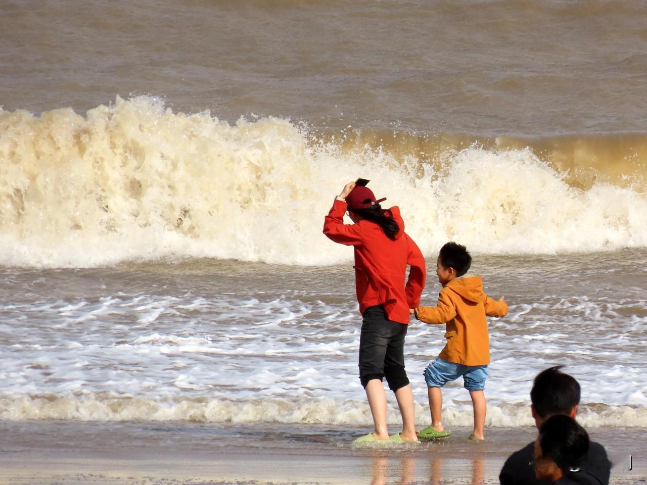 海浪翻卷,沙滩踏浪。