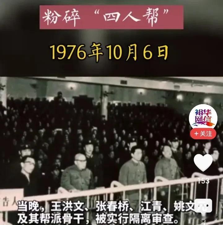 #历史上的今天# 1976年10月6日中央政治局执行当和人民的意志,采取果断措施一举粉碎了“四人帮”,延续十年之久的“文化大革命”结束。