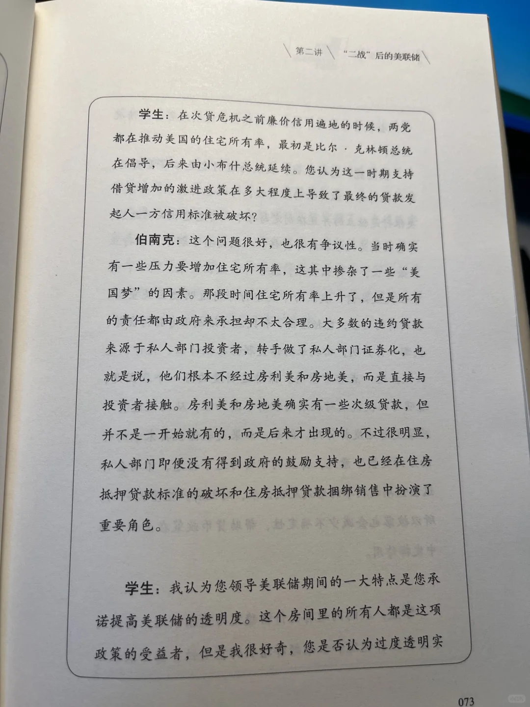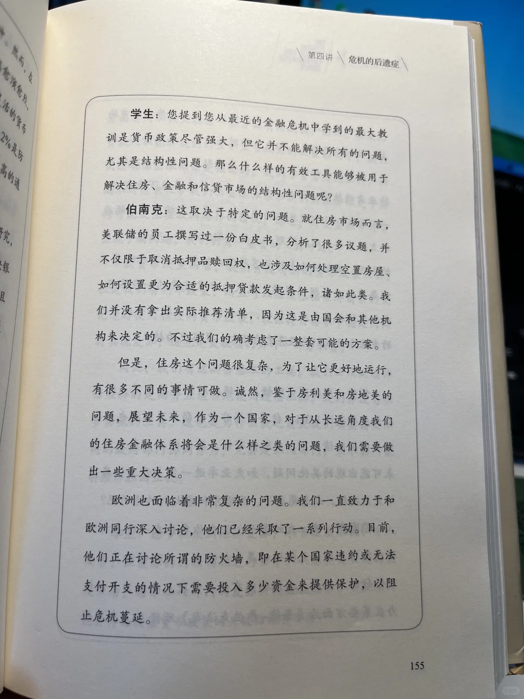 本书的第三讲和第四讲主要阐述此次金融危机以及美联储的应对措施。