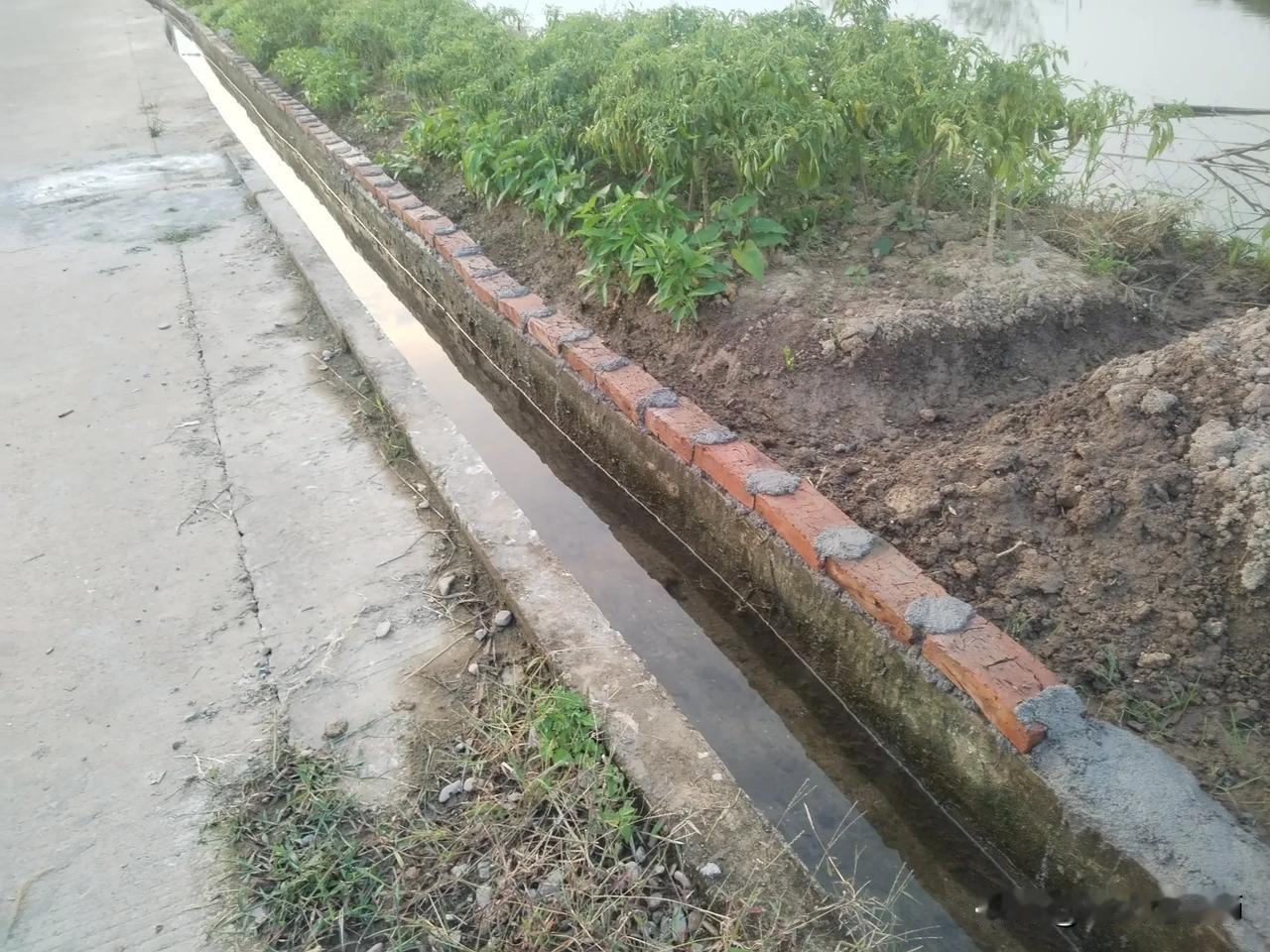 水渠在我菜地一段比某他地方低,当前口子一同堵死时,水从我菜地里漫过流进鱼塘里,鱼会逃跑出去。 昨天下午,我拉来红砖、水泥和河沙,将菜地边加高一层,防止水无序进人鱼塘里。 从三点钟忙到晚上7点半才完工,幸亏那里有两个路灯。 #秋日生活打卡季# #劳动# #养鱼# #我的退休生活#