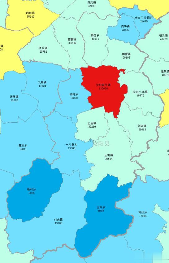 2020年进行了第七次人口普查,汝阳县城关镇人口最多,达到了130626人,王坪乡不足9000人。