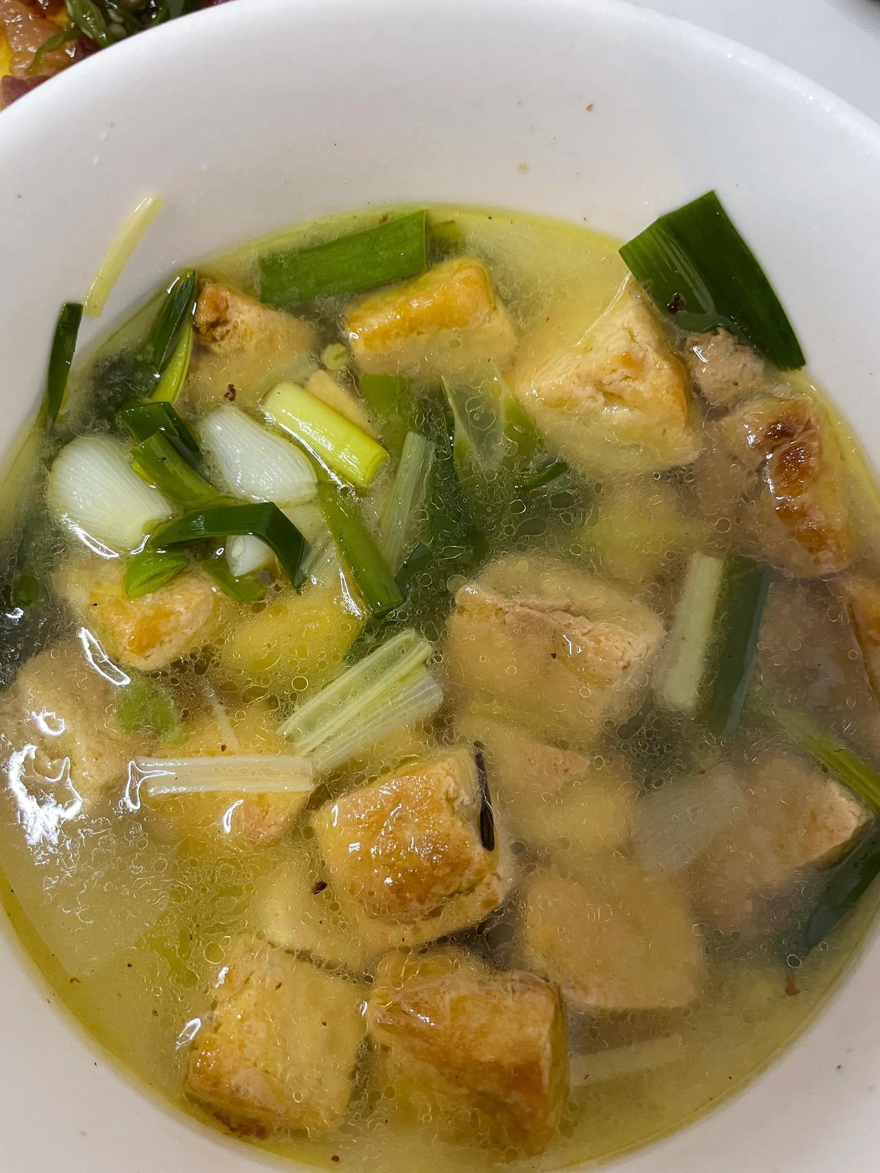 #理想家生活# 忙碌了一个上午,1:30分到家,推开家门,老公饭菜拿上桌,饭乘好,一直崔我快吃饭🍚。 哇![奸笑]炒火腿、蒜苗煮豆腐、白菜汤、茄荷。普通家庭,过普通人的生活,知足常乐。[偷笑]