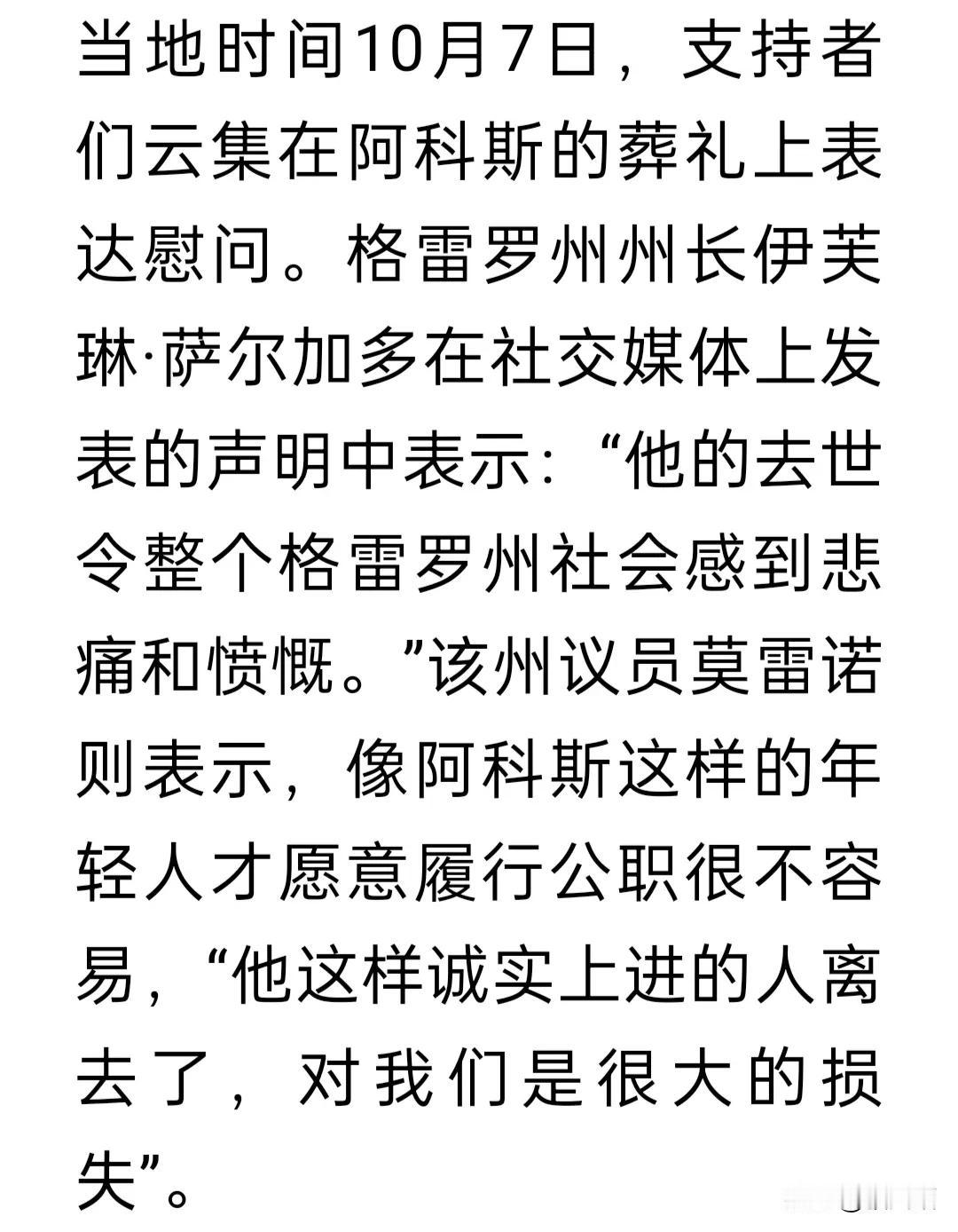 墨西哥一市长上任六天就遭斩首。媒体对他评价还是不错的:说他平时表现诚实上进,他的离去是一大损失。 格雷罗州共有6名政客遇害,暴力行为让很多有志于公职的人对该州“敬而远之”。 反观我们国内,前段时间湖南财政厅女厅长也被歹徒惨遭杀害,已发的讣告中也高度评价了这位女厅长。 总之,在这个社会好人难当,清官更难当,不是吗?