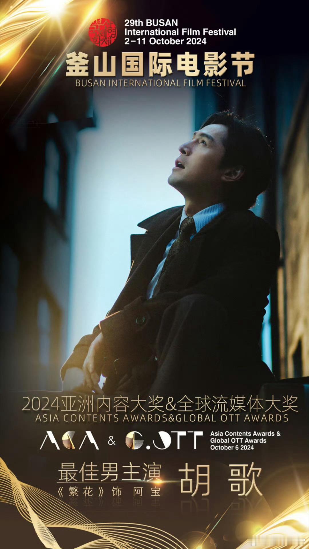 #胡歌亚洲内容大赏视帝##繁花胡歌釜山双获大奖# 恭喜宝总拿下国际大奖视帝