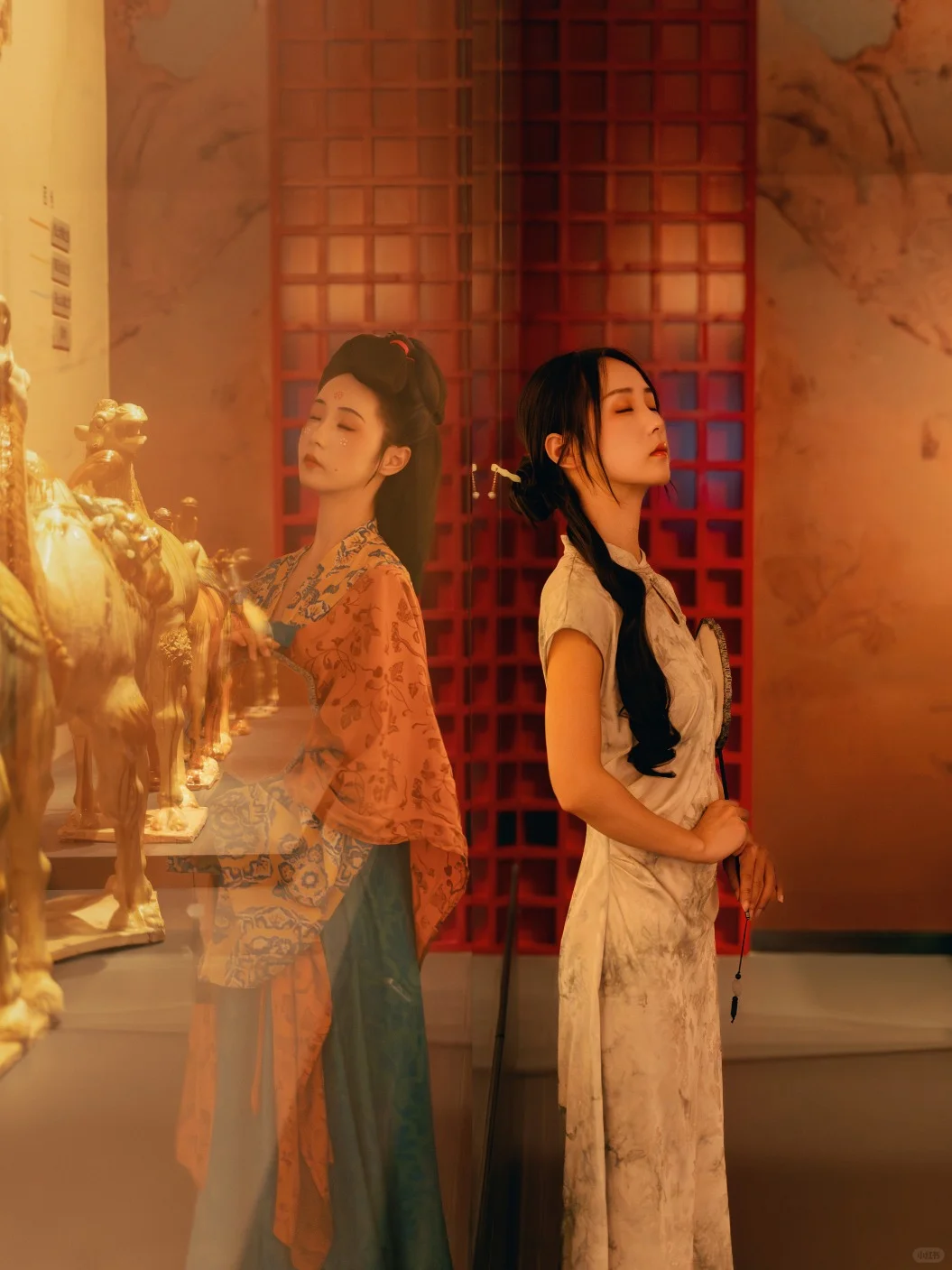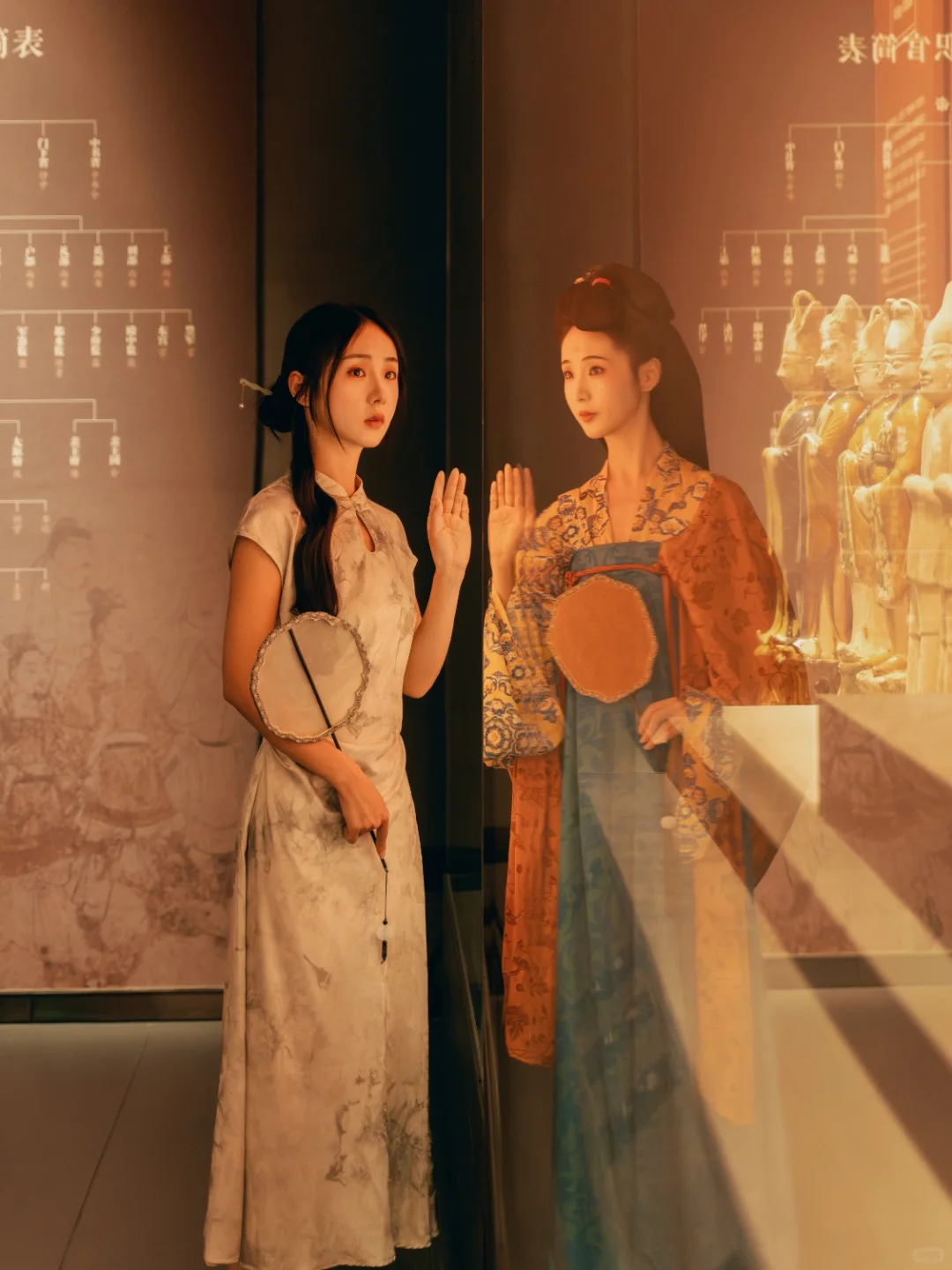 模特身着古装和现代装