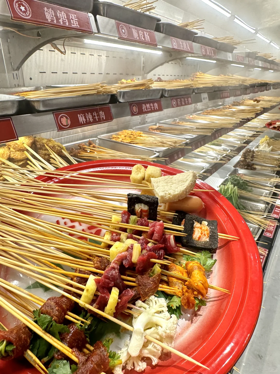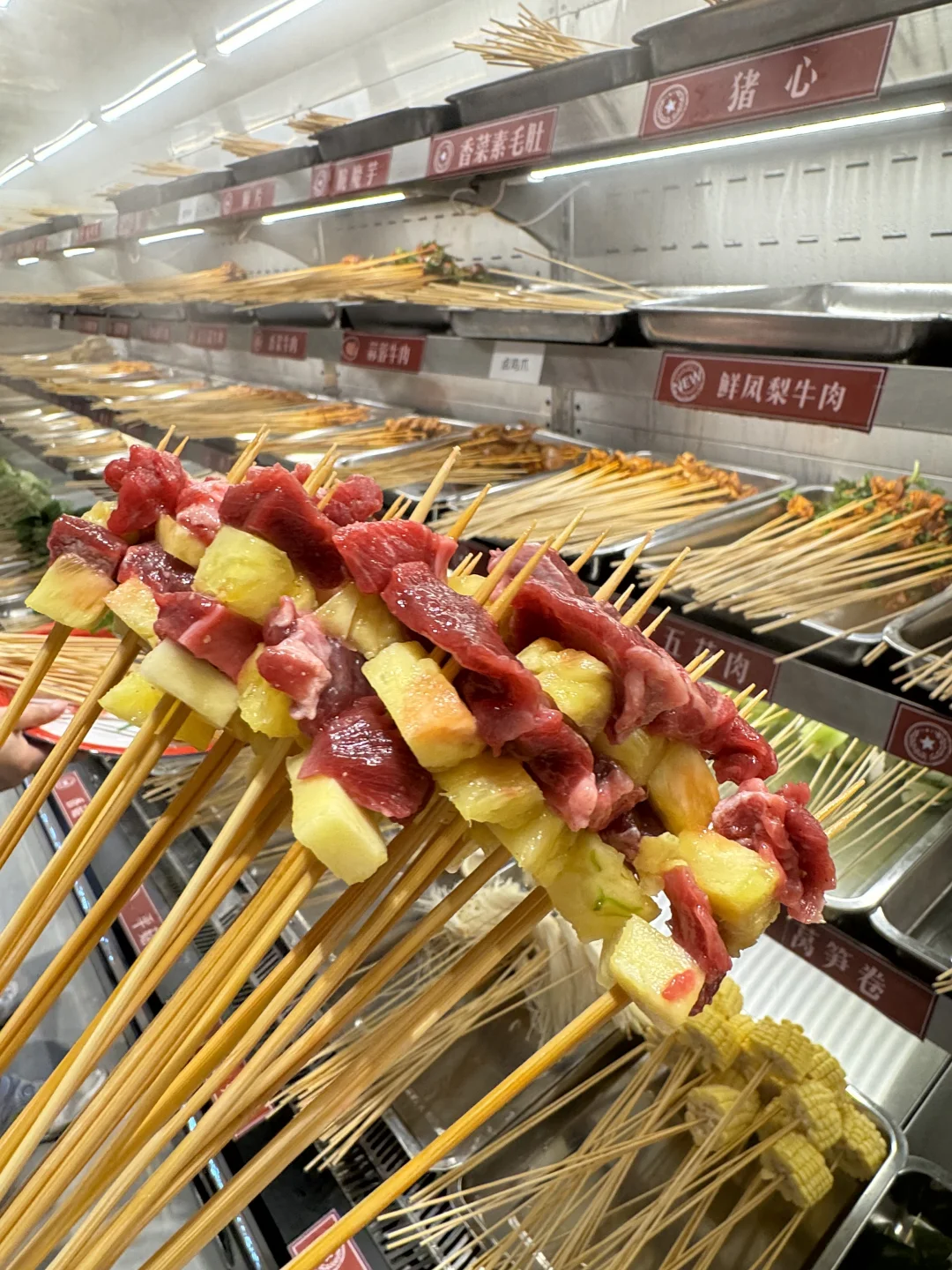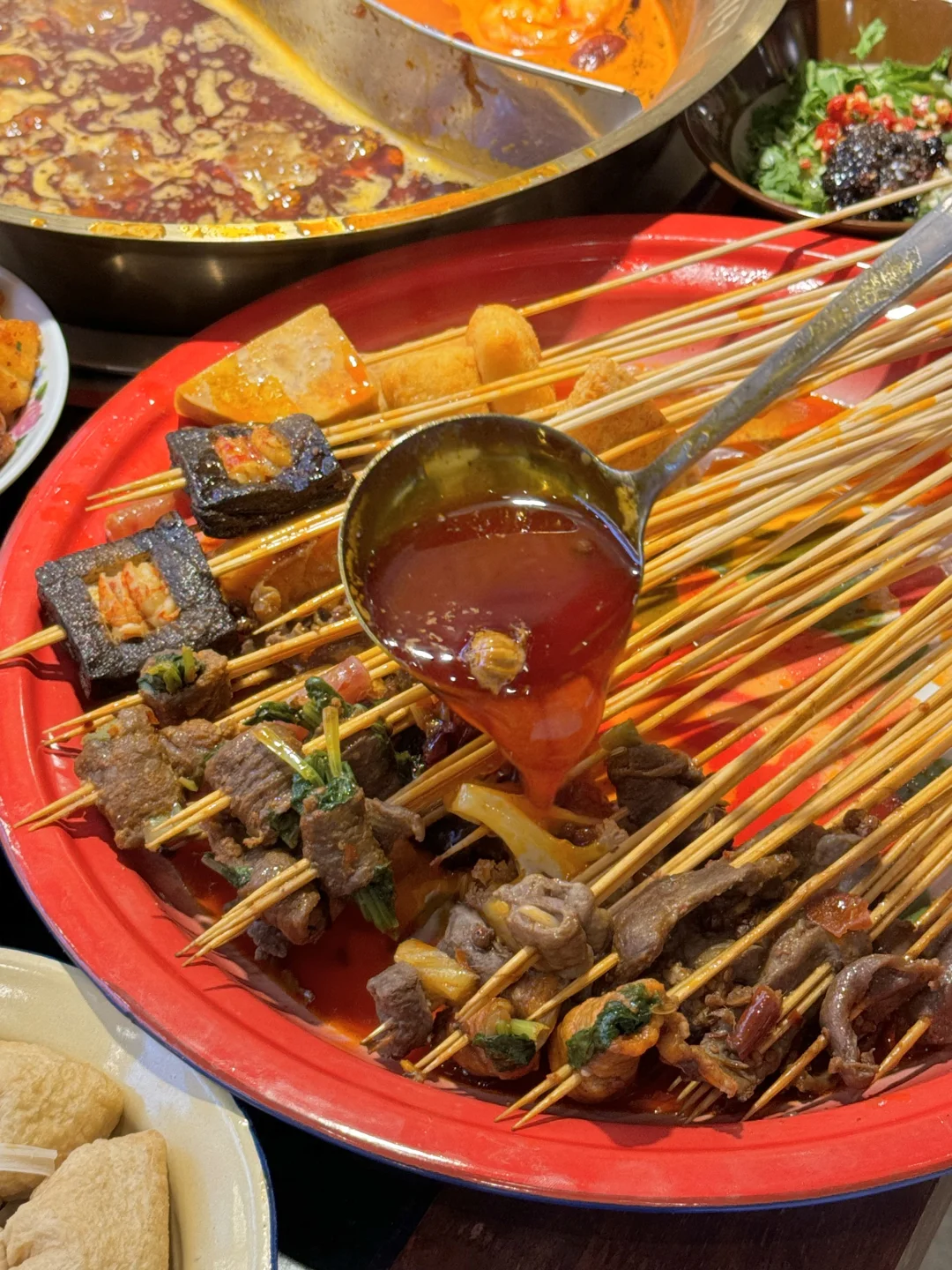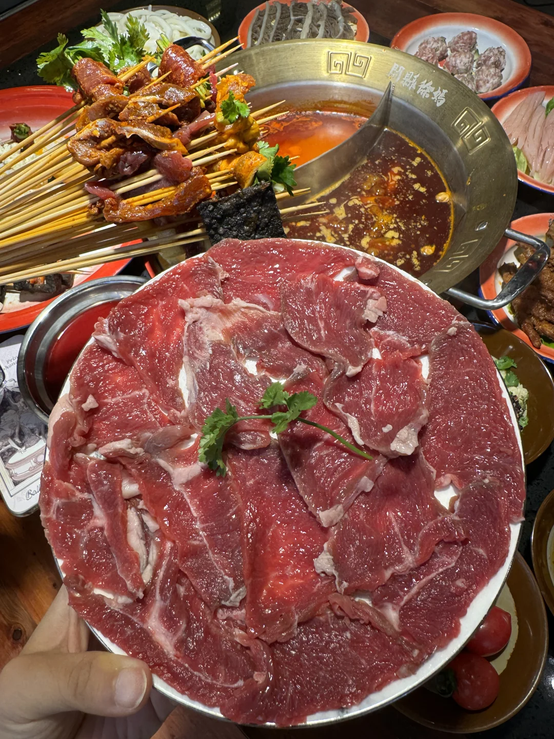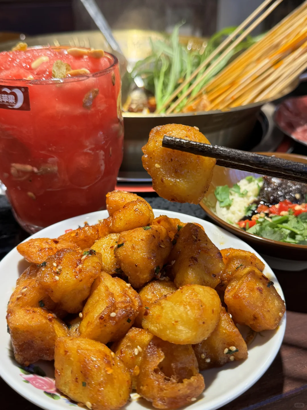 烟火气满满的串串,每个月都要吃的程度! 牛油鸳鸯锅底,牛油香气扑鼻,辣辣的超爽! 鲜切黄牛肉很新鲜,纹路清晰上等牛肉就是吃的过瘾 千丝黄喉、香菜牛肉、凤梨牛肉一定要下辣锅!!嘎嘎有滋味! 锅巴洋芋🥔外脆里面~土豆心堪比土豆泥一样绵密! 西瓜刨冰,好爽!大块西瓜果肉!清爽解腻!! 环境也很干净,整洁!!服务更是没得说!