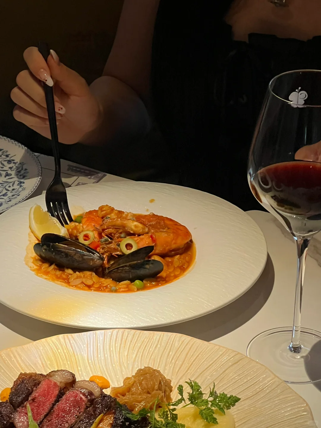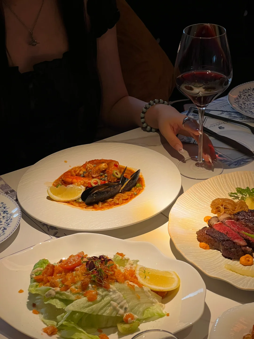环境很舒适,好适合约会、纪念日 各种节日氛围!还有包厢! 西冷牛排3分熟油脂分布均匀 风干三文鱼沙拉很有特色,三文鱼口感细腻香甜 花菜天妇罗外酥里糯~