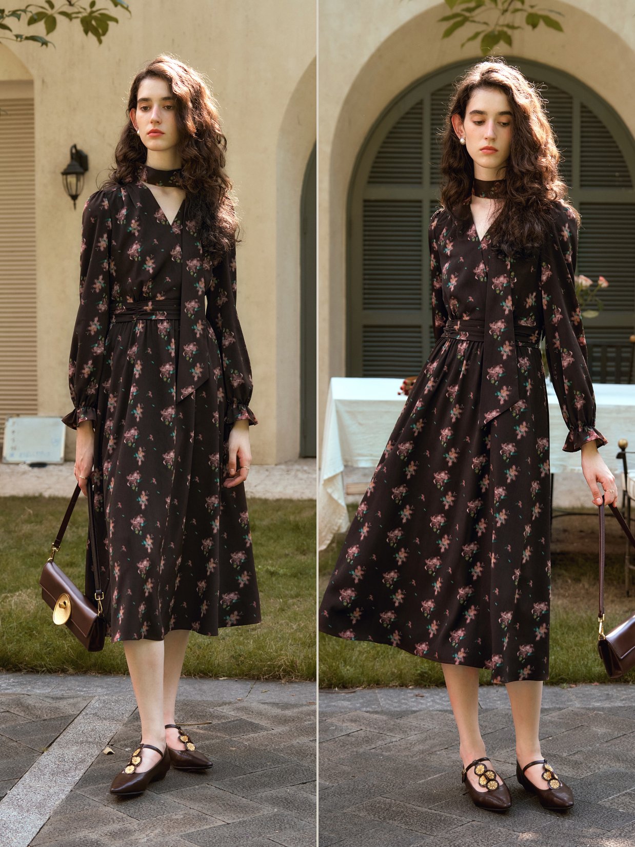 低调优雅绽放!法式浪漫玫瑰连衣裙
