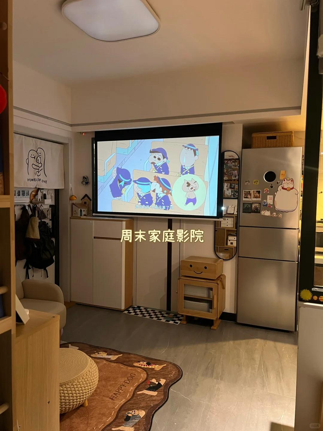 房子经过布置后,改成了1.5室1厅,可能有些读者好奇,怎么还多出一个0.5,原因很简单,因为有一个隐藏的小房间,它就藏在柜体里,暂时可以将它当成客卧。