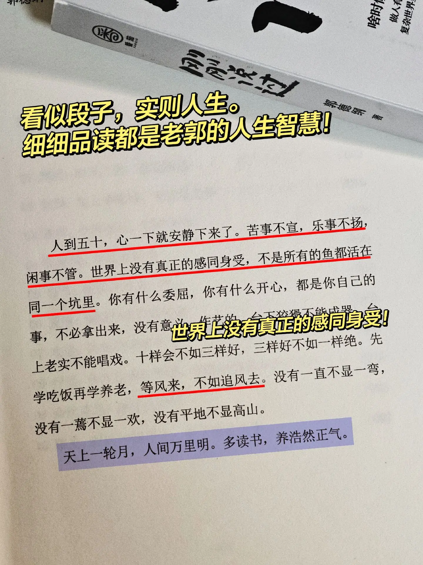 郭德纲新书太通透了,治愈了我最近的焦虑!郭德纲老师2024新书,句句大实话,每一句都说到心坎里了,看似段子,细品则是人生!关于事业、处事、爱情、友情的人生智慧,郭老把所有的想说的,都写进了这本书里!他说,人这辈子啥时候开窍都不晚,内耗焦虑的时候读读这本书,一起跟郭老在这个复杂世界里,做个通透明白人!