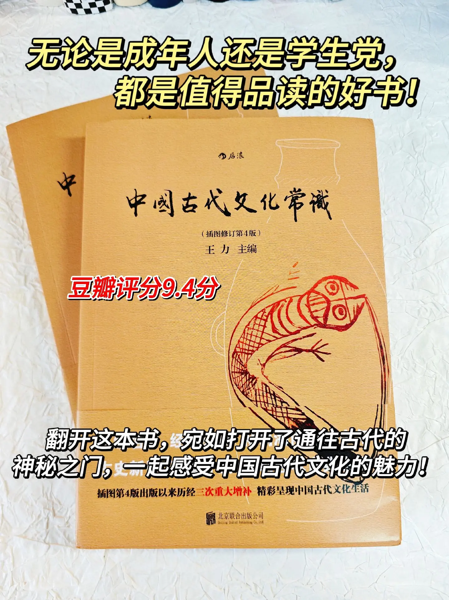 不愧是北大中文系指定教材!狠狠涨知识了!圈内人才知道的好书!被称为中国古代的百科全书!王力教授作品,全书从天文、地理、宗法、礼俗、官职、科举、饮食、衣饰等是14个章节详细描述中国古代文化精髓,出版50余年历经4次修订,书中采用四色印刷技术,高度还原大量文物实拍图,真是一场中国古代文化的视觉盛宴!不论是大人还是学生,都是值得入手的好书!