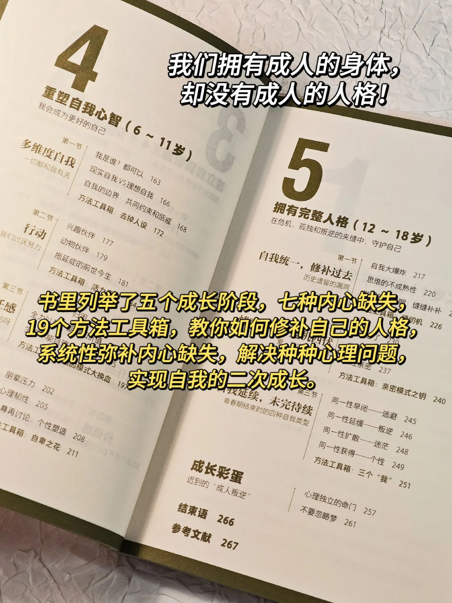 敏感自卑的女生,一定要读读这本二次成长!看这本书时,就像和心理师对话,仿佛内心被安了监控一样,让我看到了那个满是碎片的自己!我们拥有成人的身体,却未必拥有成人的人格!作者在书中说到,对于任何一种缺失,我们不要试图去掩盖或者毁灭它,而是把它变成值得信任的伙伴!那些缺失的,我们需要自己找回来!
