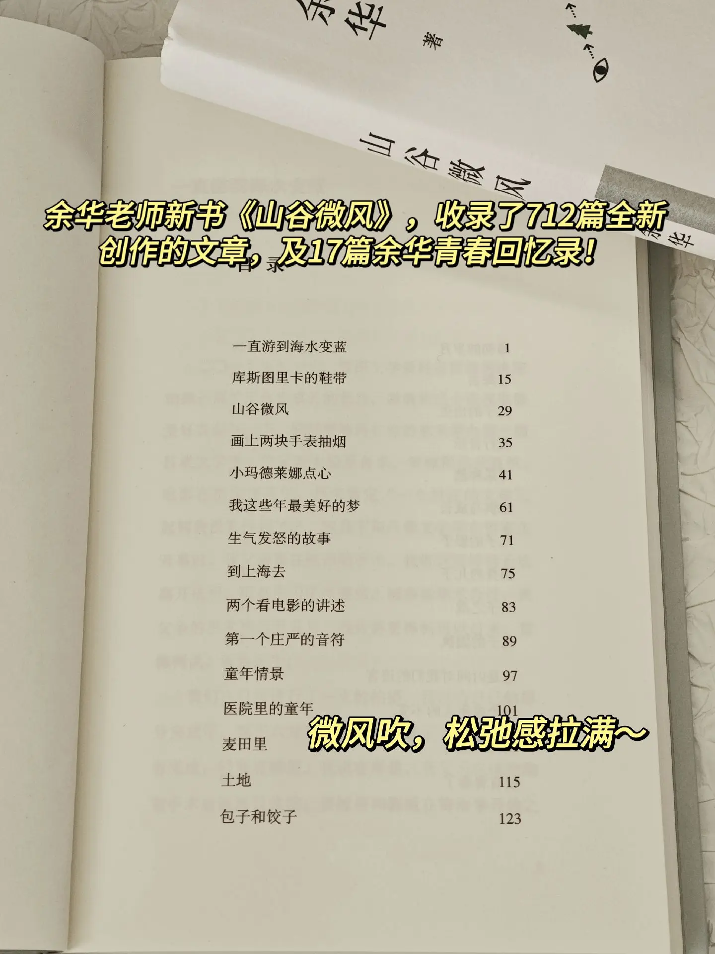不愧是余华老师的文笔!松弛感拉满好~再一次被余华老师温暖到了!余华老师在新书《山谷微风》中写到:“紧张还是放松,都是生活给予的,什么时候给予什么是生活的意愿,我们没的选择,只有接受”。但是我们接过来以后,我们才能看清楚,你用什么样的姿态去接,你就会得到不一样的结果!这就如现在的我们,日复一日的各种压力失眠焦虑紧张,到后来都是要和生活和解与自己和解!!如果你正处在焦虑内耗中,请读读余华老师这本书,读完会有一种放下拧巴轻松自在的感觉!
