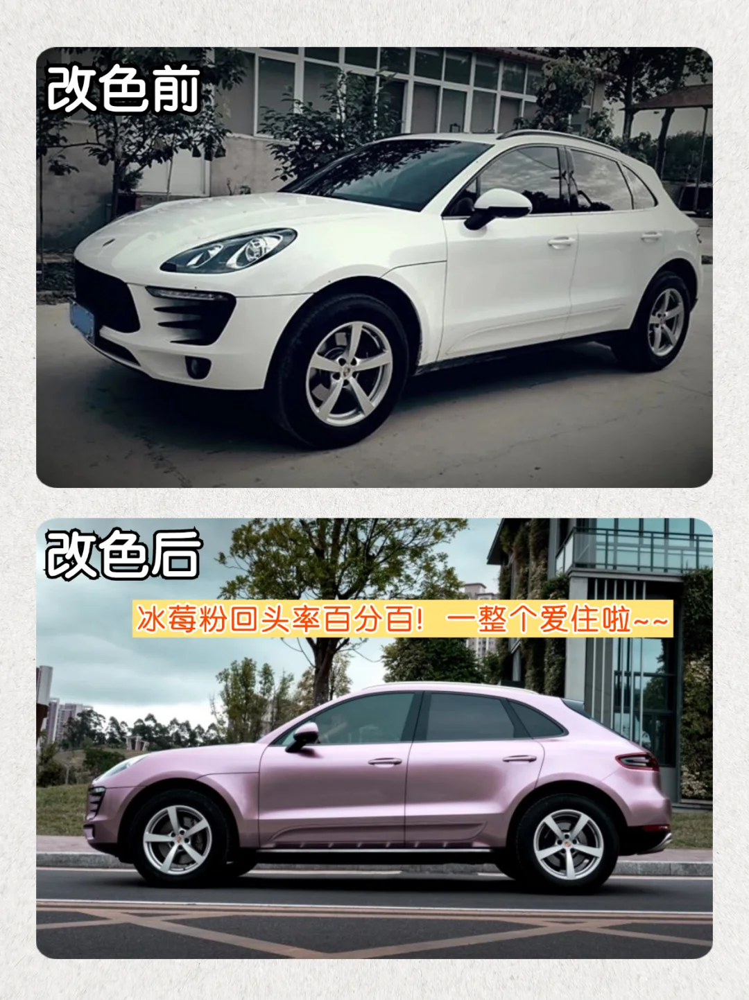 ➡️其次,选择比如冰莓粉,樱花粉这类颜色的,这些颜色可能是别的车型的经典色,👌可以用改色膜来实现。比如喜欢这个颜色,但不喜欢那款车。