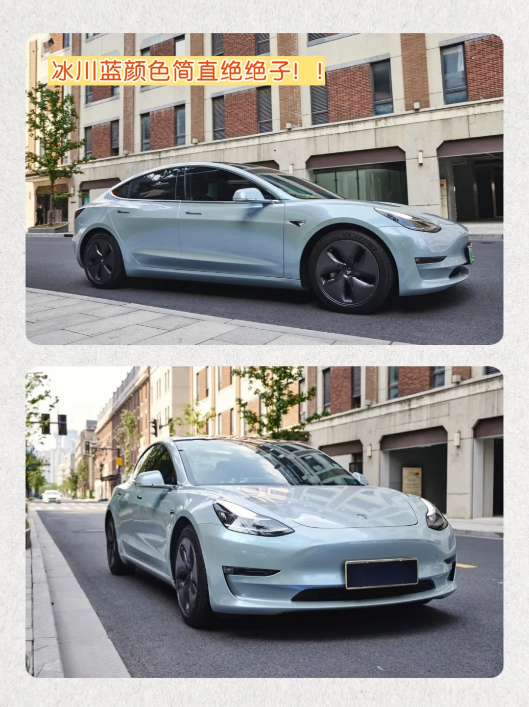 还有就是可以挑战一些不常见的颜色,➡️比如这款冰川蓝,挑战一些平常车漆不会有的颜色,这样才更有改色的意义嘛