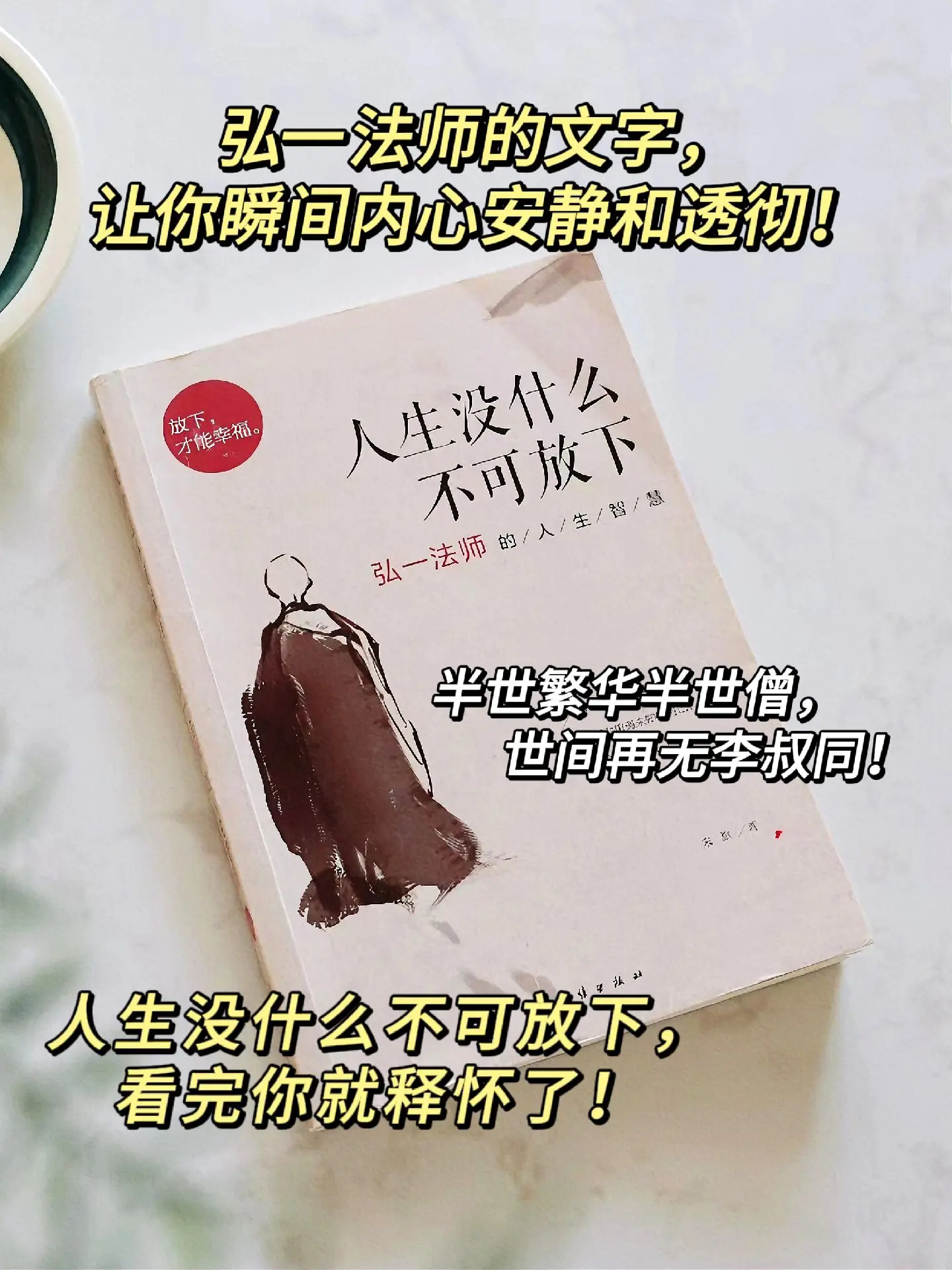 放下才能拥有!人生没什么不可放下,人生本来就没有意义,有意义的是当下是此刻!我们终其一生其实都是自己一个人生活着,只有自己才是自己的退路和底气,余生好好爱自己,学会释怀和放下,人生才会幸福快乐!如果你郁闷烦恼不开心,不妨读一读这本书弘一法师的人生智慧书,或许你会找到自己想要的答案。