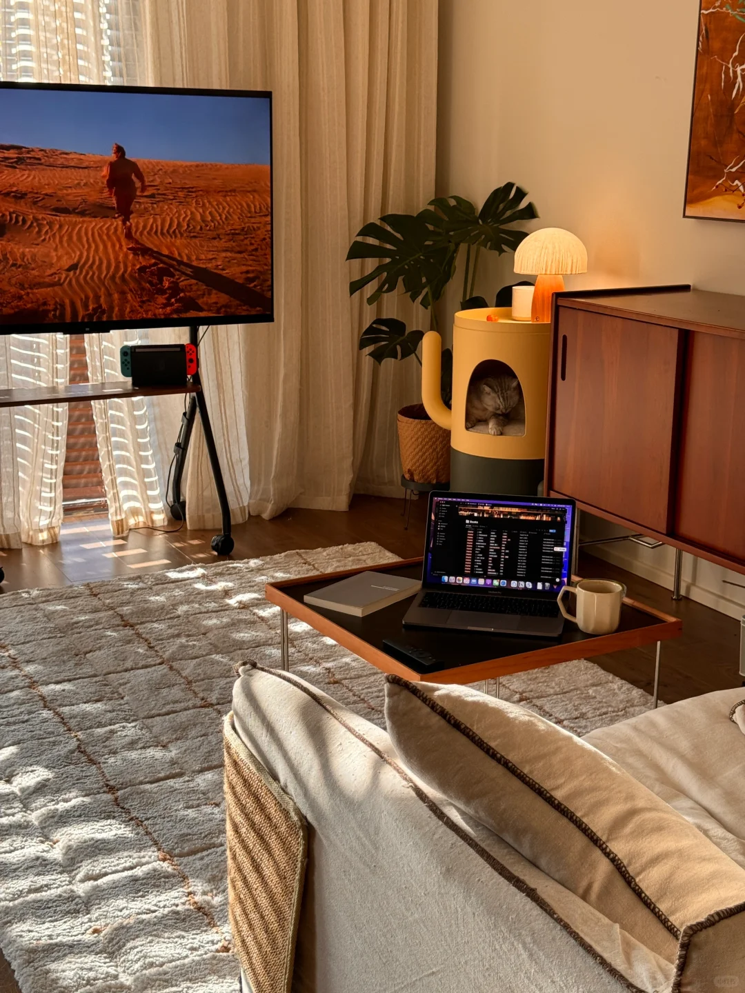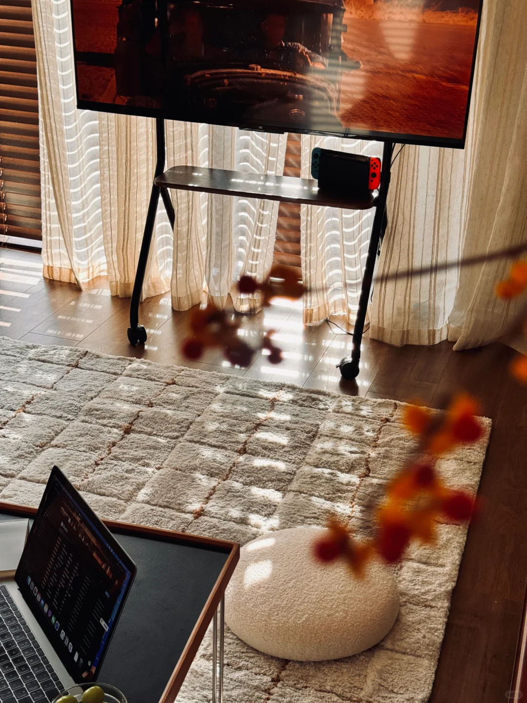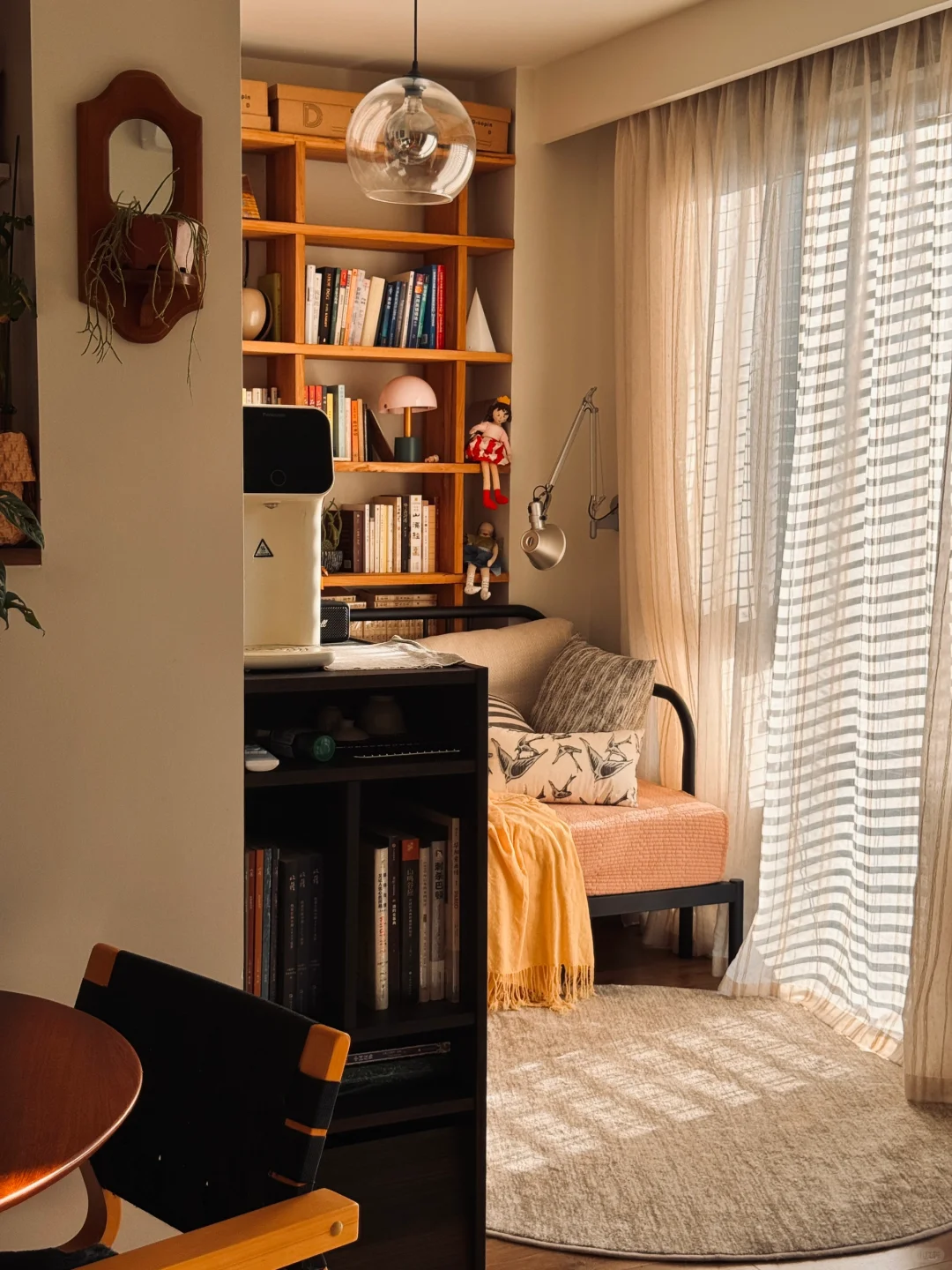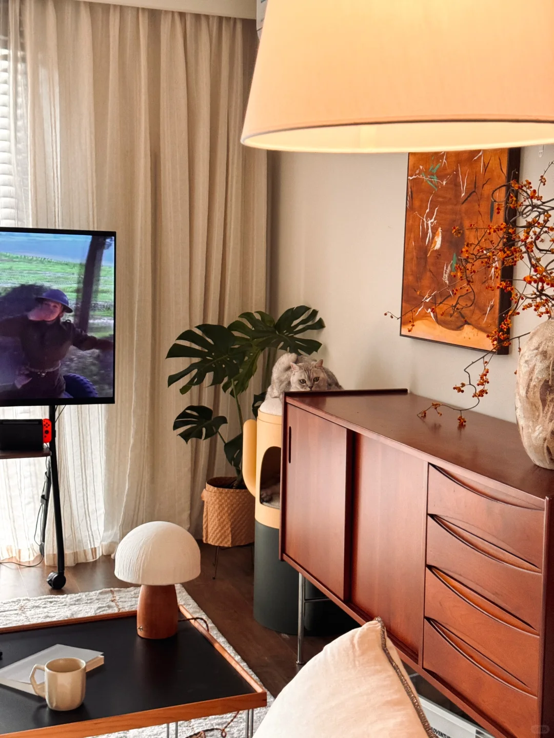 又是一场秋🍂 喜欢这个家里的秋 可以24h开着窗 是北方秋天清冷又新鲜的空气 把这个原本通风不是很好的小房子从夏日的闷热里解救出来 午后的阳光少了分炙热,斑驳地洒在地毯上 一切都好像变得更温柔 去花市添置了新的绿植和干花 重新倒腾下家里的花和画 当然,还有喵 这个漂亮的小房子又迎来了一场秋 . 这是一个在北京五环外的小🏠 套内56平一居改小两居 有三个大落地窗和治愈人心的橙色阳光 自己摸索着完成设计+工长半包落地 工长+硬装花费10左右 剩下软装和一人两猫的生活 持续捣鼓中…. .
