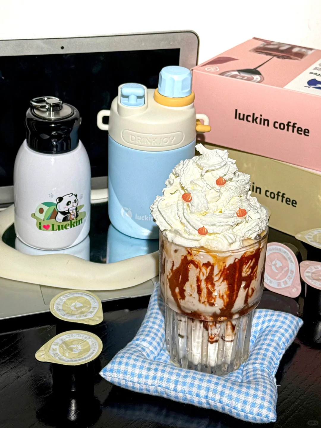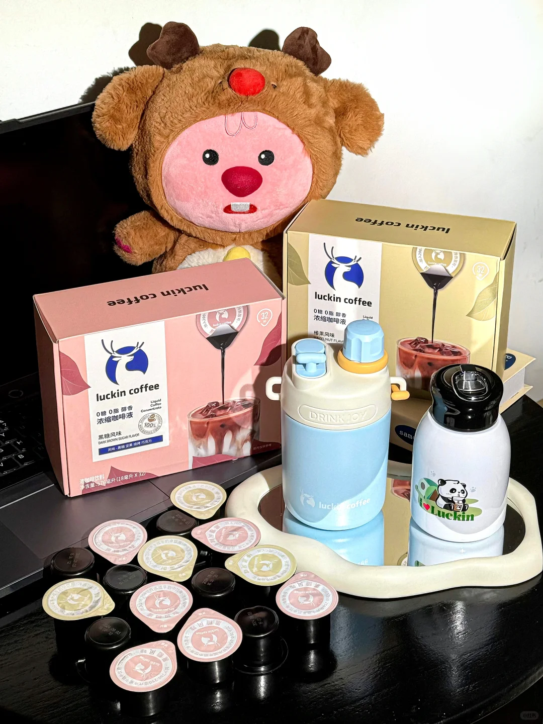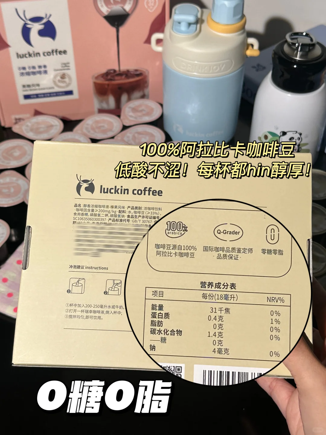 啊啊啊瑞幸咖啡液真的绝了!!便宜就算了,竟然还送周边保温保冷随行杯 超实用哎…… 有没有像我一样每天都想瑞一杯的,但有时候又懒得出门谁懂啊😭😭 自从入了这个咖啡液不要太方便了就是说!直接往水里一淋,咻的一下就溶开啦✌️!或者自己diy起来也很简单又好喝!! · 有四种口味:生椰风味、黑糖风味、榛果风味、意式黑咖!0️⃣糖0️⃣脂,低卡完全没有负担~ 用的是100%阿拉比卡咖啡豆,14倍高浓醇 咖啡味巨巨浓郁!!低酸不涩口,柔和的口感好醇厚!真的吼吼喝🤤 每一盒32颗装,这个性价比我真的服 而且每一颗都独立包装 0-100℃冷热即溶,随时随地都能瑞啦~还是檀健次代言同款!快去get! . 俺diy了燕麦榛巧瑞纳冰🌰🍫🧊 真的一口沦陷。。 榛果咖啡香气扑鼻而来,加上黑巧和燕麦奶的醇香,顶上的奶油太太适合秋冬了🍂~做法很简单👉🏻 榛果风味➕黑巧挂壁➕燕麦奶➕奶油顶➕冰 ☕还有黑糖拿铁!黑糖香气丝滑不腻,一口爱上!! 做法也很简单👉🏻 黑糖风味咖啡液➕鲜奶➕冰 · 📣两盒咖啡液即赠随行杯/拿铁生椰浆 俺选的是随行杯-糖果蓝和熊猫乐园,胖嘟嘟的杯身、颜值超可爱的呜呜呜🥺 直饮杯口+精巧吸管口设计,大口吨吨or优雅饮水都可以,尊嘟很方便!! 还有背带连接处,可以随心配喜欢的肩带~ 出门walk真的需要这样的杯子随时喝咖啡呀💦 ·