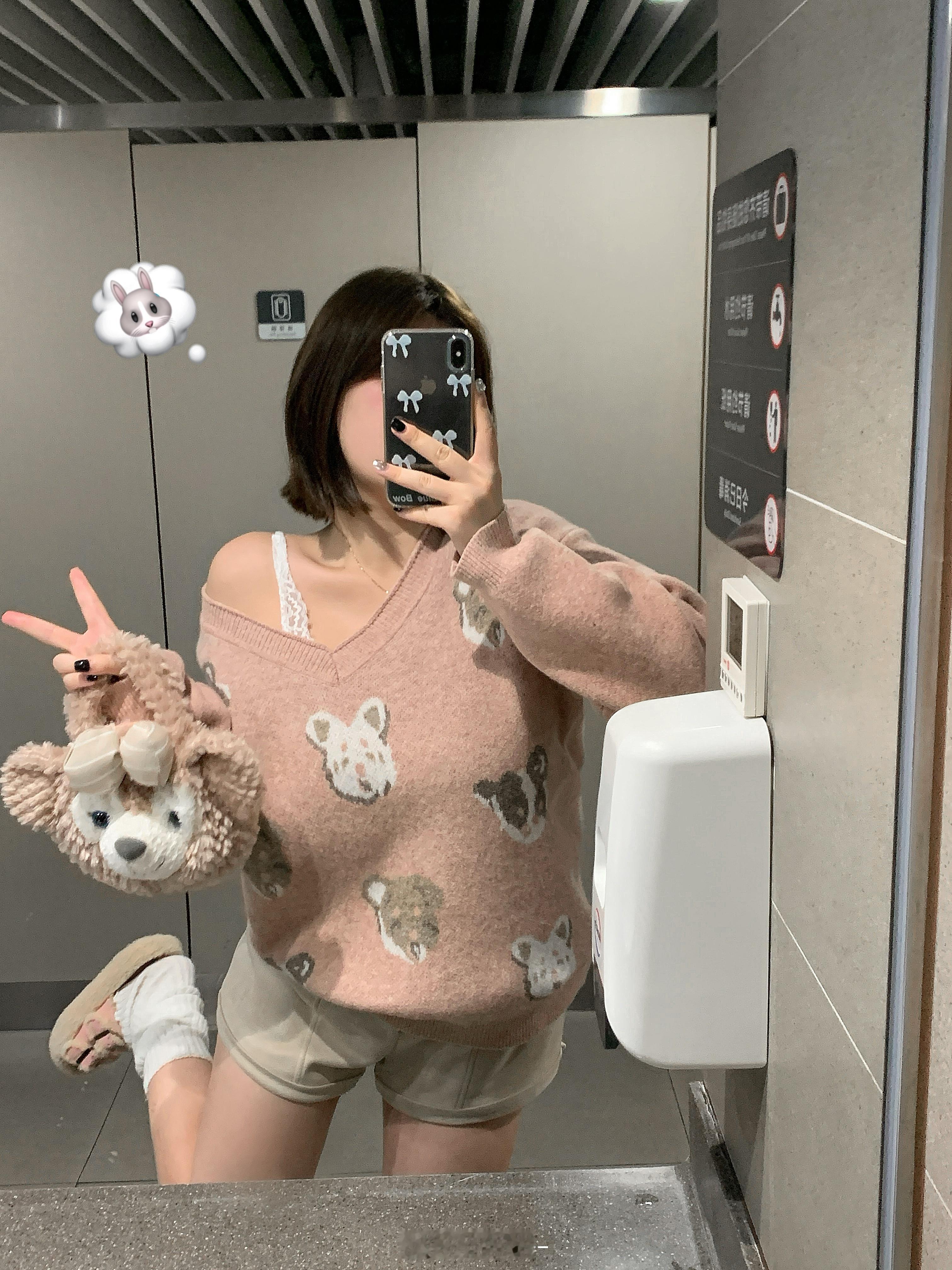 6种纱线织!!!【芝麻底高克重!!!·“汪汪大头贴”】V领毛衣