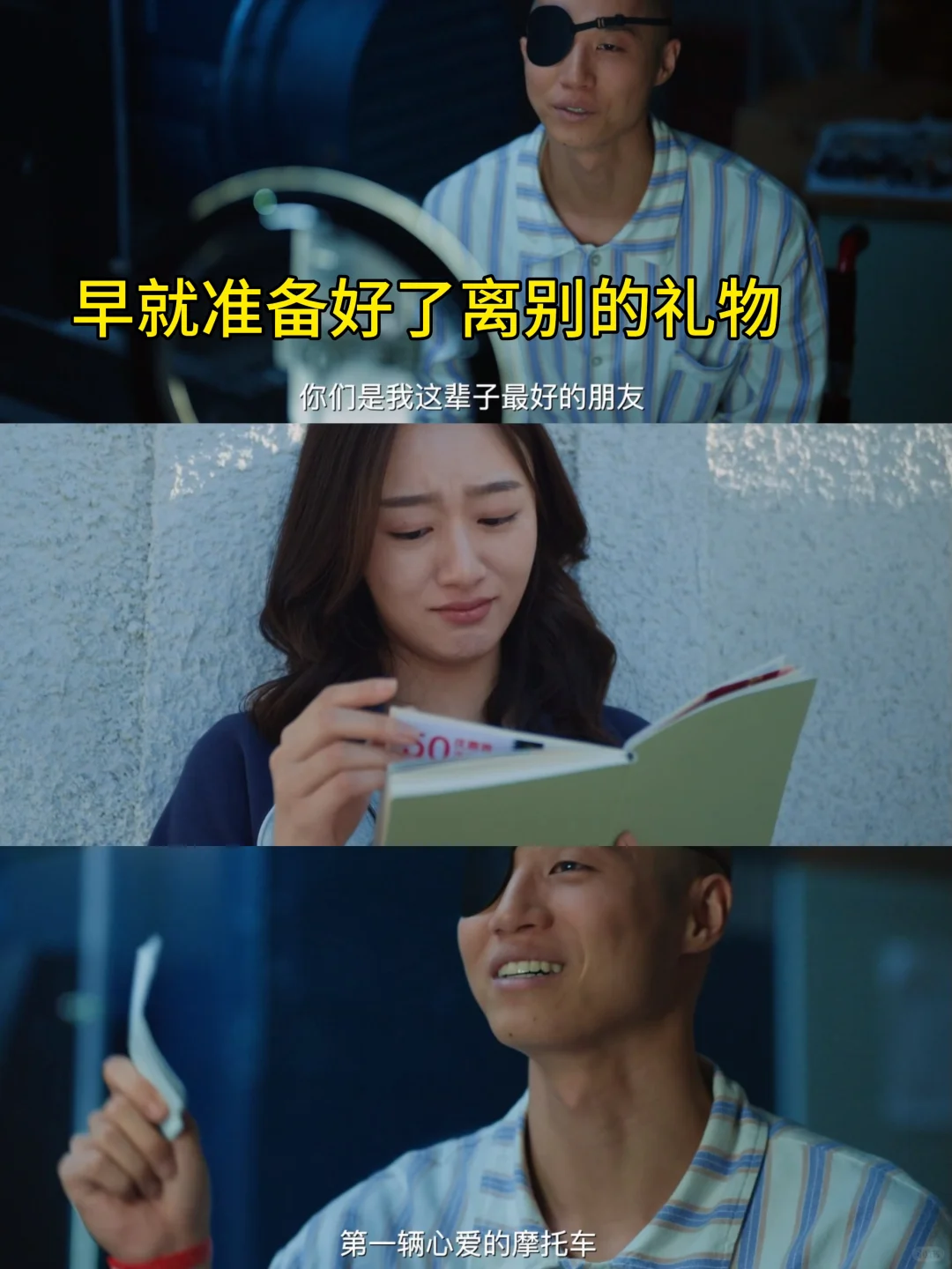 铁哥走了,但是他给每个朋友都准备了特别的🎁,送了丽总自己攒的一本子 劵,祝福她可以早日拿下心爱的🏍,给小路准备了钢笔,那是铁哥妈妈的遗物,里面包含着对小路最美好的祝福,还有给天然的炸鸡 卡,给晖子的拥抱。临别之际还不忘鼓励朋友们继续努力,好好生活!