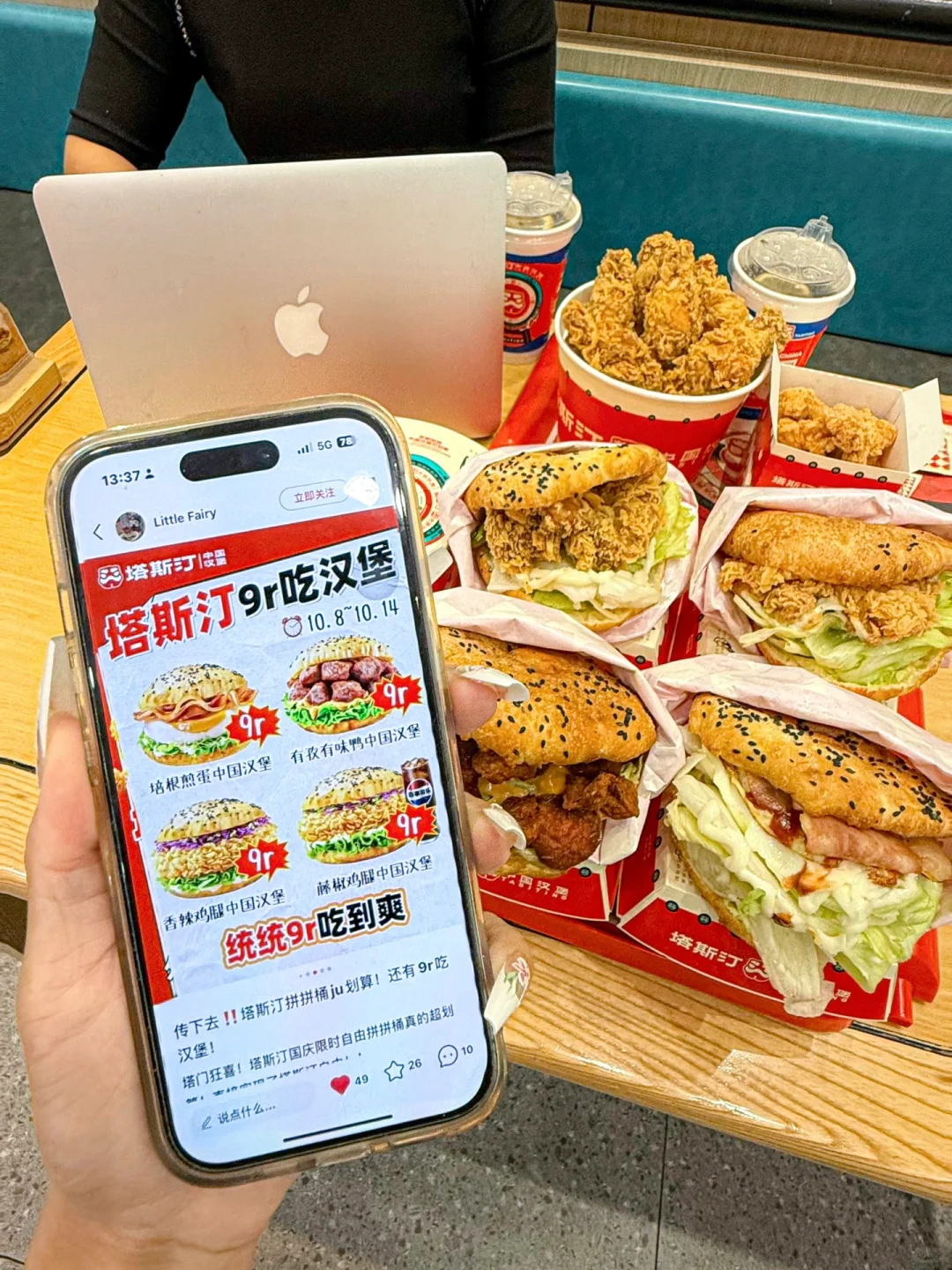 啊啊啊啊塔斯汀你想宠我们直说! 开工后一周9r就能吃堡….真的鲨疯了🤯🤯🤯 横扫班味,做回自己!打工人直接爆哭!! · 🕑10.8-10.14 连续7天‼️‼️ 开工每天9r吃堡🍔!还是不重样的!! · 活动攻略👇🏻 即日起 10.8(周二):小食2份随心选(塔塔鸡块、盐酥鸡米花、荆楚尖叫翅尖、双享翅根、粗薯,五选二) 10.9(周三):培根煎蛋堡 10.10(周四):香辣鸡腿汉堡+冰柠可乐 10.11(周五):有孜有味中国汉堡 10.12-10.13(周末):双享翅根桶(内含三份 10.14(周一):藤椒鸡腿中国汉堡+冰柠可乐 · 已经定好闹钟 准备一周七天塔塔横扫班味咯!!!