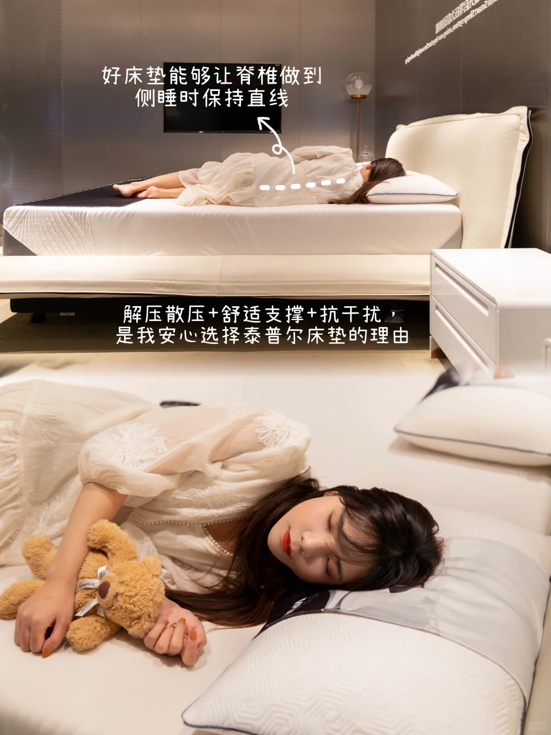 🎬策划内容、写脚本、拍摄剪视频、带娃是我的日常,长时间伏案工作也是常态,肩周酸软腰酸背痛是经常的事,实在扛不住了,寻思看能不能让我两牛马能睡得好一点💤。就在网上做了一番功课📚,种草了由泰普尔睿选SMART智能床和泰普尔床垫组合而成的泰普尔智能睡眠系统,今天跟老公去线下探店试试!想去线下体验一波的朋友,可以到琶洲吉盛伟邦,地铁直达🚇交通方便(8号线琶洲站D出口直走300米),进去后电梯🛗直上5楼就看见啦。