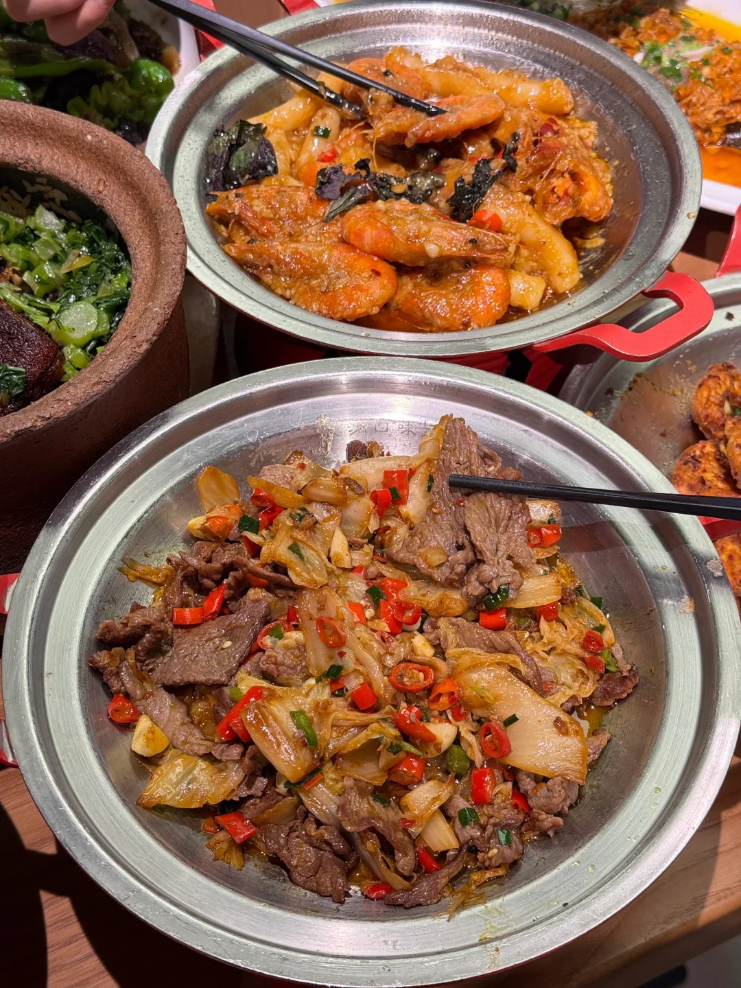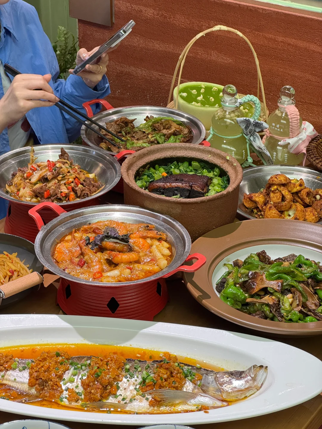 酸辣入味的辣白菜炒黄牛肉🐂份量十足!拌饭可以炫好几碗的那种!Q弹软糯的土辣椒炒甲鱼 终于在杭州找到好吃的湘菜了🔥!!! 还有颜值高高的小甜品 duangduang的蜜瓜🍈冻冻 用葫芦装的茉莉青提饮 为了这个好看的葫芦也要点!清爽解腻的龙井茉莉冰淇淋🍦糯叽叽的樱花糕🌸才💰1.8便宜又好吃😋 发财金钱蛋、长沙口味虾🦐、黄贡椒蒸翘白鱼盲点都不踩雷~