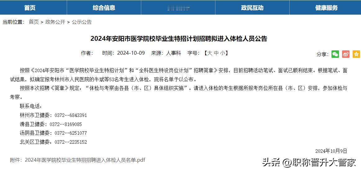 2024年安阳市医学院校毕业生特招计划招聘拟进入体检人员公告已发布!快来看看你入选了吗? #医学生##医学##医学生日常##职称论文##医生##职称#