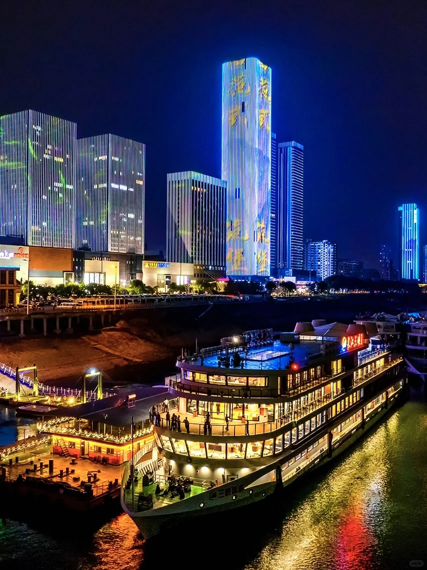 ✅长江夜游。三峡游船轻轻摇曳,江水映照星光。