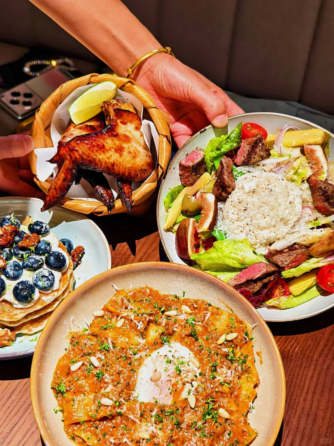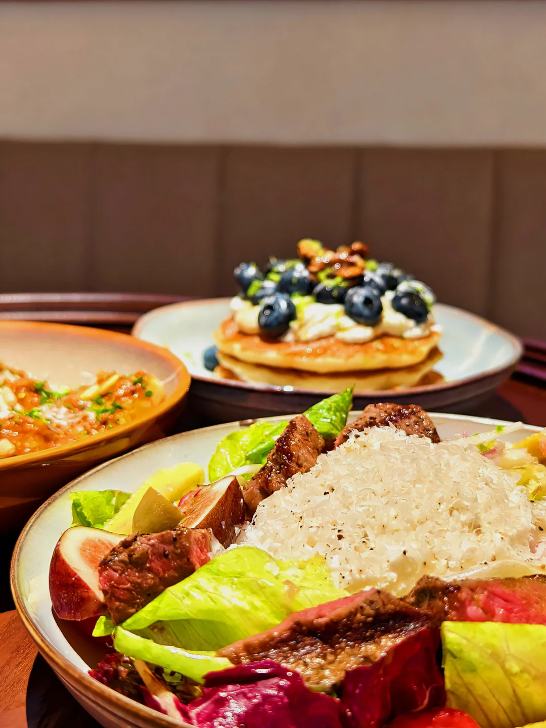 是哪位仙女还在想他家的蓝莓🫐松饼 来喽来喽 在天美 6 楼重新开业喽 ✅蓝莓🫐松饼 他家招牌中的招牌!很经典,现做的松饼,口感松软,一点儿也不会齁甜,淡淡的奶香,每层中间还夹了蓝莓酱,酸酸甜甜,撒的蓝莓🫐也都很大颗,特别新鲜 ✅肉酱宽面🍜:肉酱满满,宽面条特别筋道!很挂汁,中间窝了一个流心温泉蛋,戳开搭配着里面的蛋液!特别鲜 这饭张力?!咱就是说这不表白直接妥了!?