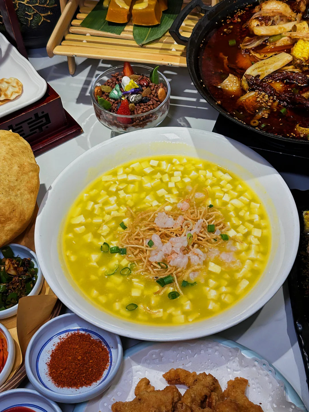 ✓虾仁豆花:味道鲜美,豆花软嫩,滑溜溜的,很好喝.配饭很nice.[赞R][赞R][赞R]